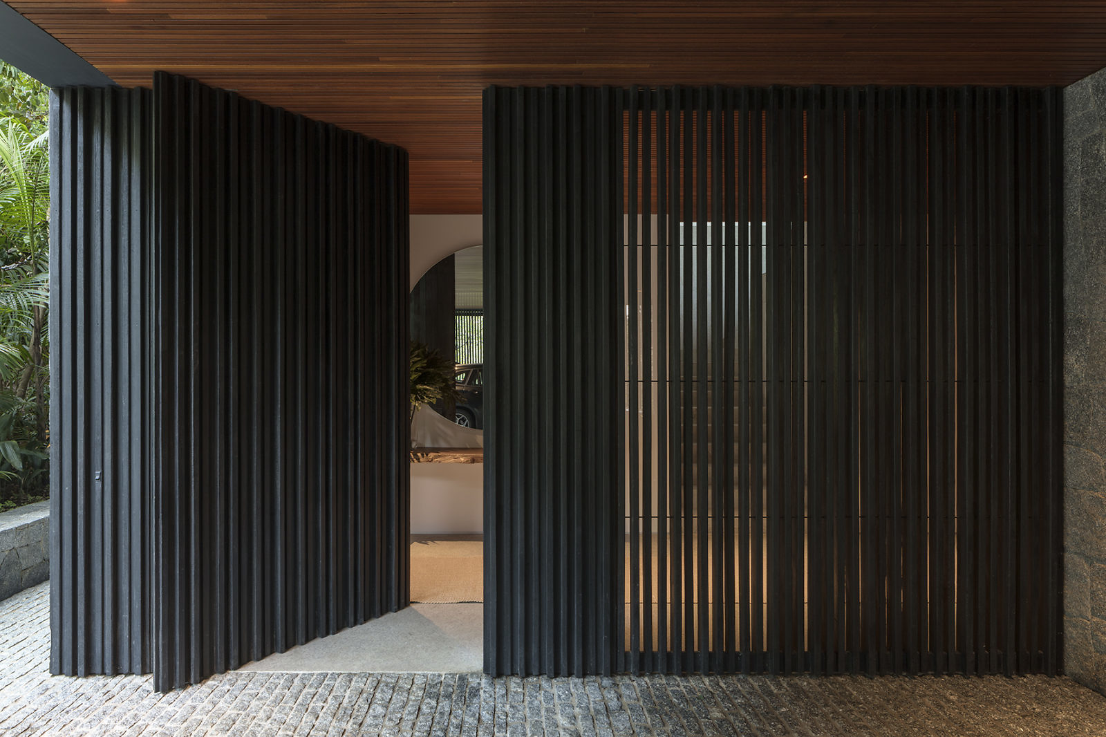 This outdoor space offers an atmosphere that’s both cozy and calm. You can swim, longue, read a novel, or just stare at the just in idle. Elsewhere, you’ll see a modern aesthetic, but with natural materials thrown in for a healthy balance. You’ll see plenty of wood-lined surfaces, sawed granite floors, and timber cladding. The house invites the outside in. It’s such a cliche thing to say, of course. But cliches exist for a reason.