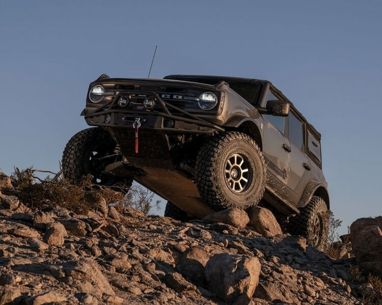 On the other hand, when the terrain turns rough, this bad boy will rise up to the challenge. FOX Factory provides a breakdown of what goes into each KOH Bronco. The team outfits the SUV with BDS “uniball front upper control arms, adjustable rear control arms, and an adjustable track bar.”