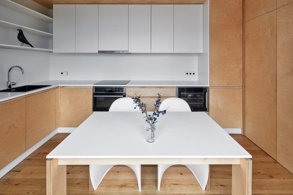 Don’t mistake speed for clunkiness, though. This prefab home boasts some brute thanks to a construction made almost entirely of timber. That includes the wood fiber insulation and the northern larch facade. And don’t forget the oak flooring and gorgeous birch plywood furniture.