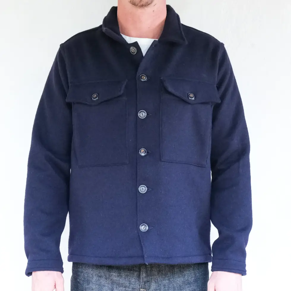 Freenote Cloth outfitted their take on the vintage M42 Uniform with a warmer and softer fabric instead of the cotton herringbone twill found on the original. This layer uses a yarn-dyed melton wool blend made in Japan that is soft and comfortable on the skin. It is made with a combination of 70% wool, 20% polyester 5% nylon, and 5% acrylic so it provides enough warmth when the temperature drops and just the right amount of stretch to get you moving.