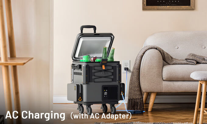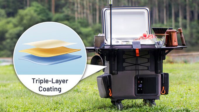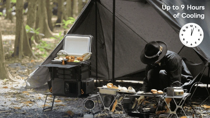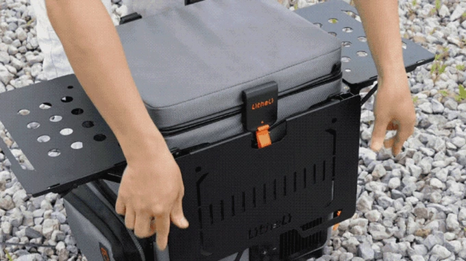 Speaking of power, the battery recharges either AC or DC/ car charging. Amazingly, this cooler offers temperature adjustments via Smart Bluetooth Control. The app suggests ideal temperatures, toggles ECO/MAX modes, and provides battery information with alerts for easy cooling control. The cooler also converts into a modular kitchen with the expansion table attachment.