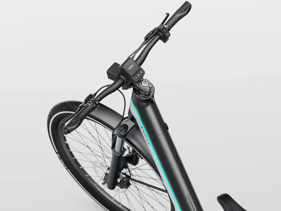 At a glance, the most obvious difference between the Flluid-2S and Flluid-3S is the frame design. The former is your standard bike configuration with a top tube, while the latter goes for a step-through layout. The chassis is fabricated out of aluminum alloy and is outfitted with a 120 mm-travel Suntour XCR34 front suspension.