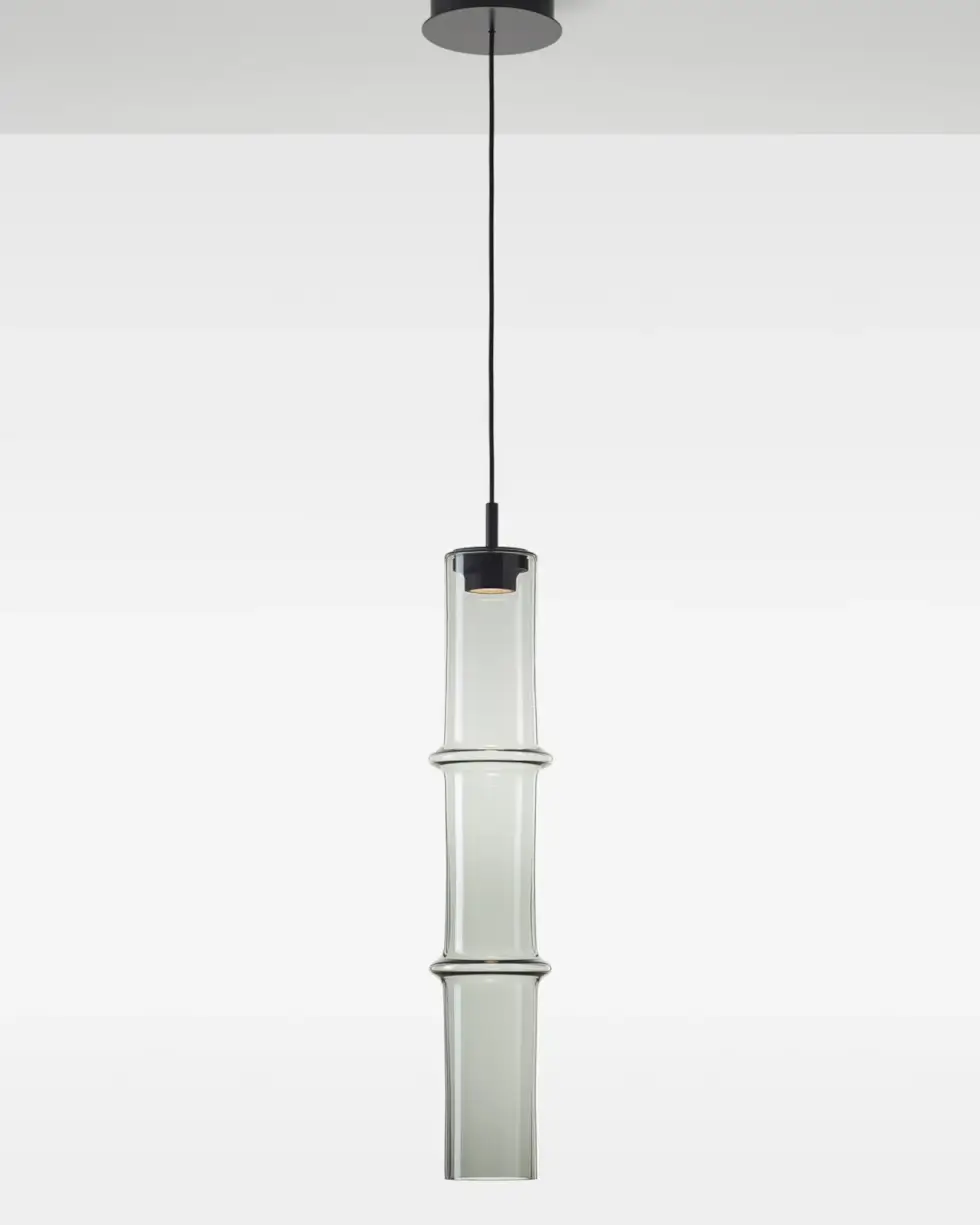 The hand-sculpted glass mimics the shape of bamboo stalks, complete with the typical nodal ring where the material thickens and creates a soft accent in the form of subtle shadows. There are different sizes and varying positions of the node on the stalks. But when grouped together in one setting, the Bamboo Forest glass light transforms the space into a soothing sanctuary that replicates the tranquility of a bamboo grove.