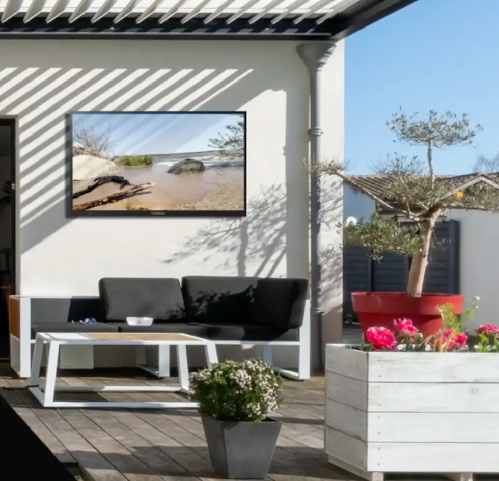 To keep images visible even in direct sunlight, the screen can output a maximum brightness of 1,500 nits. Meanwhile, the RangeXtend external antenna technology ensures a solid wireless connection to your home’s Wi-Fi signal. The Aurora Sun is available in three sizes: 55 inches, 65 inches, and 75 inches. This 4K UHD-resolution panel even support HDR10 and is best paired with Furrion’s Aurora 2.1 Outdoor Soundbar.