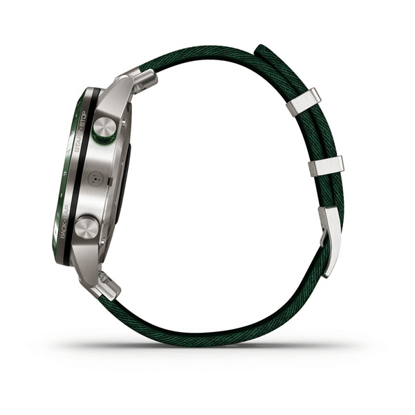 Everything in the MARQ catalog is Garmin’s luxury-grade option for individuals who prefer their tech with a touch of class. Hence the 46 x 14.7 mm case flaunts a titanium construction while the bezels include a ceramic insert. Meanwhile, its 1.2-inch 240 x 240 resolution memory-in-pixel (MIP) display sits below a domed sapphire crystal for protection. These are the type of materials normally seen on high-end timepieces.