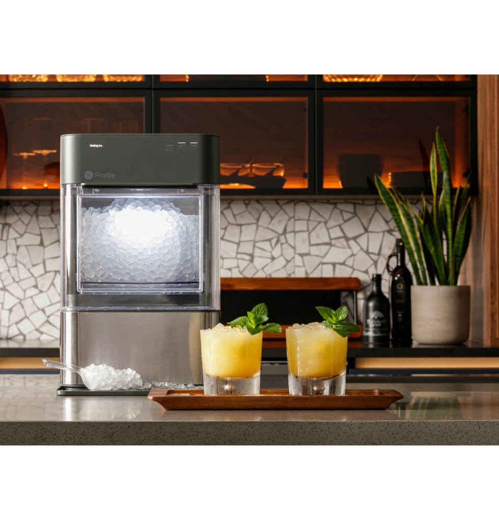 The GE Profile Opal 2.0 XL eliminates the need for an outside water source with its added 1 galloon water tank. Much like espresso machines, the tank is removable for easy refills. Plus, an innovative design prevents ice clumping and leaks by recirculating melted ice to the reservoir.