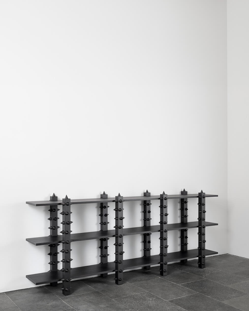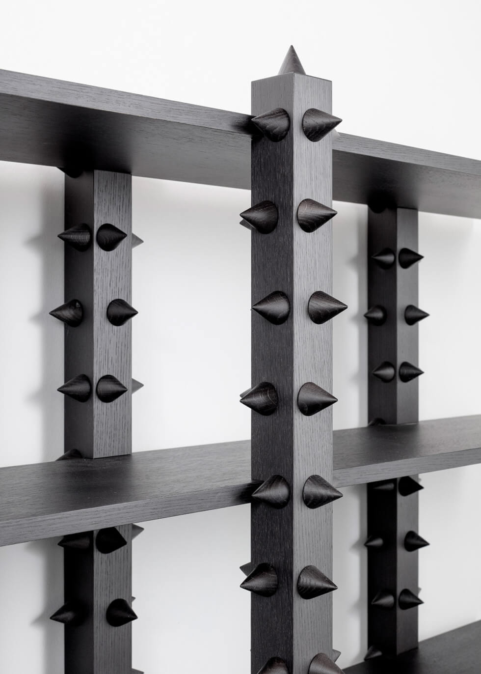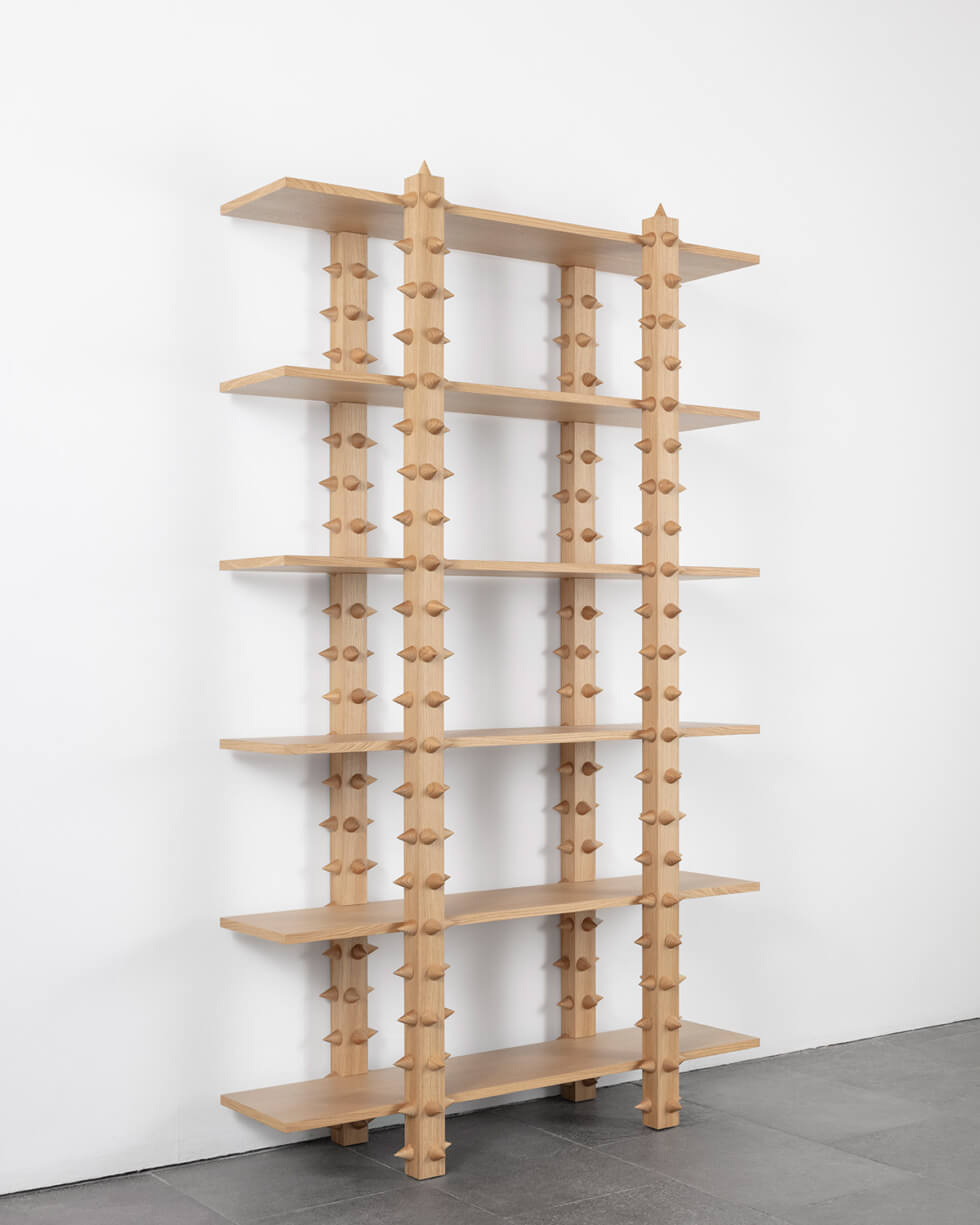 Architect and designer Giona Bierens de Haan used the natural materiality of the South American Ceiba tree in crafting his CEIBA furniture collection. The series includes two shelves, a table, and four chairs, all featuring the tree’s distinctive spiky nature.