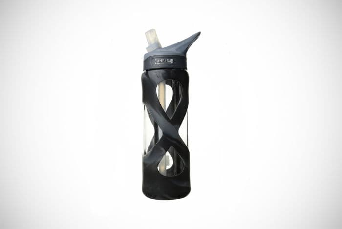 Coming in at number six, we have the revered CamelBak Eddy. This water bottle has garnered all sorts of attention thanks to its unique drinking mechanism and solid construction. This water bottle is made from very strong glass that is both lead and PBA free and it’s all wrapped up in a stylish silicone sleeve. The sleeve doesn’t cover the entire bottle, so you’ll remember the fact that you are drinking from glass.