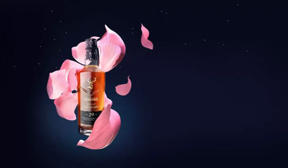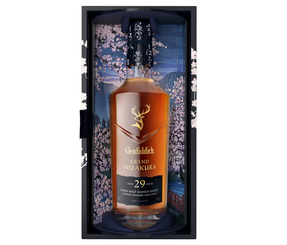 Glenfiddich describes the tasting notes of the Grand Yozakura as “a surge of ripe fruits and caramelized almonds fill the nose, before indulgent layers of toasted oak and creamy vanilla mingle with spice and sherbet, rippling on the tongue before a final crescendo of oak on the finish.”