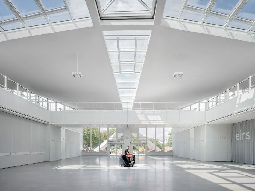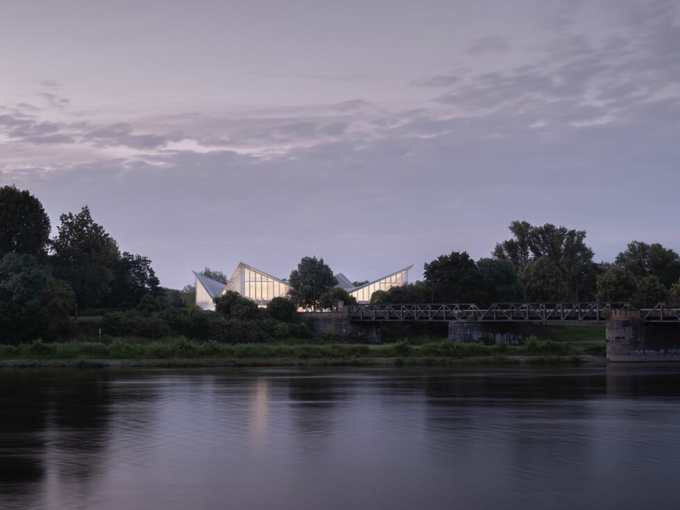 The Magdeburg office commissioned GMP Architekten to renovate and reopen Hyparschale Hall as a multifunctional venue for exhibits and events. The team strengthened and restored the original structure using carbon-fiber reinforced concrete. They also restored the rhythmically lined fins on the building’s exterior and swapped the translucent glazing with transparent glass for views across the local park.