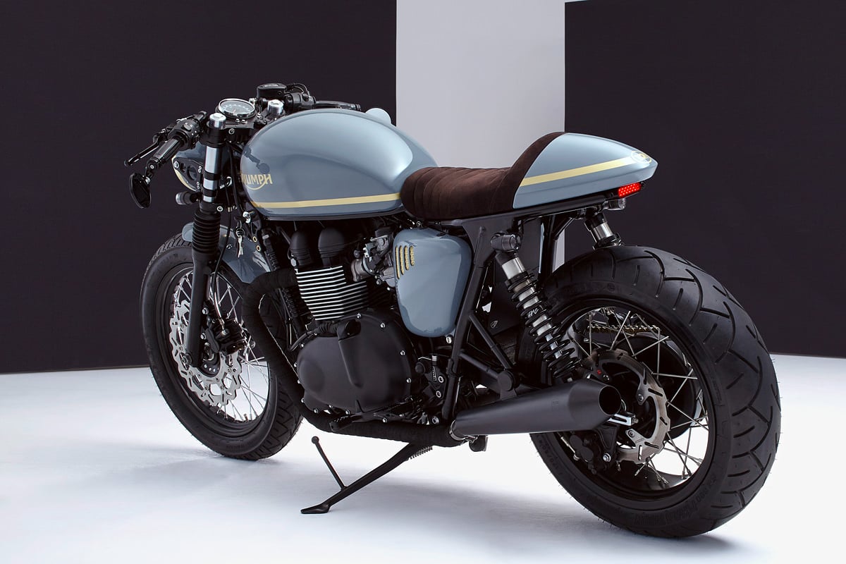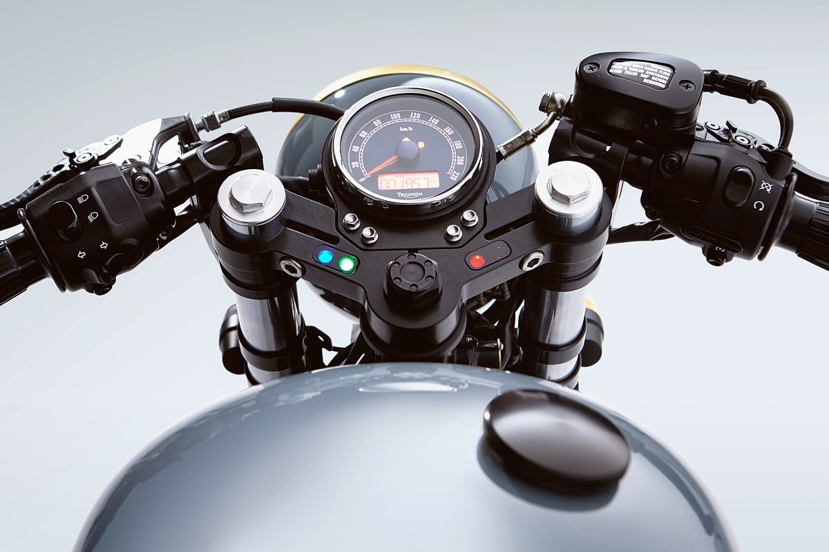 Bunker, however, did not focus entirely on looks. Actually, their main purpose with this project was to “squeeze out as much performance from the T100” as they could. They got a pair of Predator mufflers and an airbox removal kit with K&N filters from British Customs, as well as a Power Commander V unit. Now the Bonneville puts out 81 hp.
