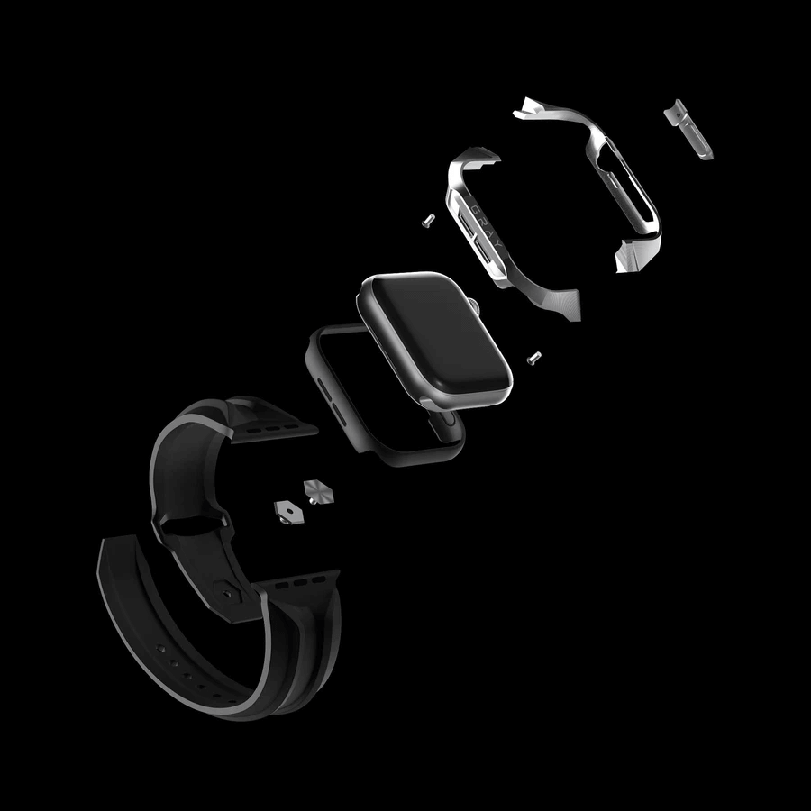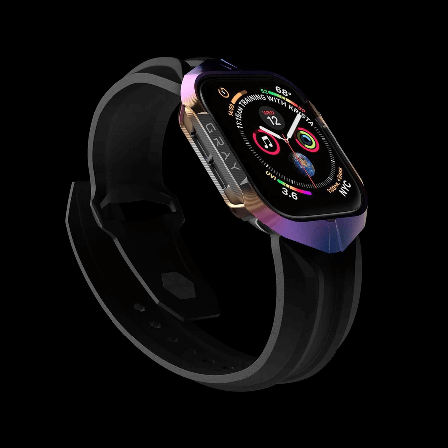 The Cyber Watch from Gray is an upscale case with an FKM rubber band that not only keeps your wearable safe but enhances its appearance. You can choose from titanium or aluminum variants and several colors to match your preference. It is engineered to perfection and fits the Apple Watch without any noticeable gaps. The metal housing reinforces its overall durability and elevates its aesthetics