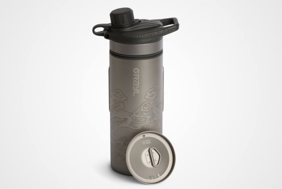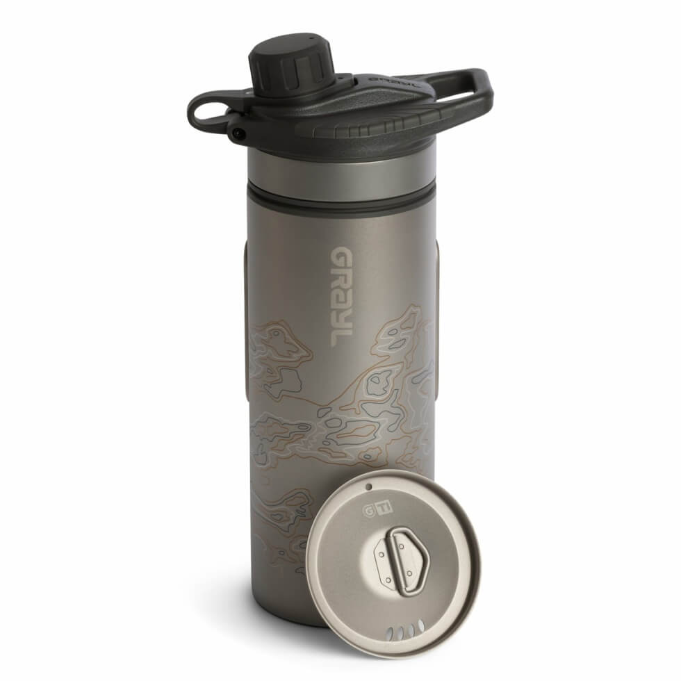 Grayl’s GeoPress Ti collects, filters and purifies water in a blazing eight seconds per 24 fl oz (5 liters/minute), using the award-winning OnePress global filtration and purification system. Just fill, press, and drink clean water even from the sketchiest freshwater sources.