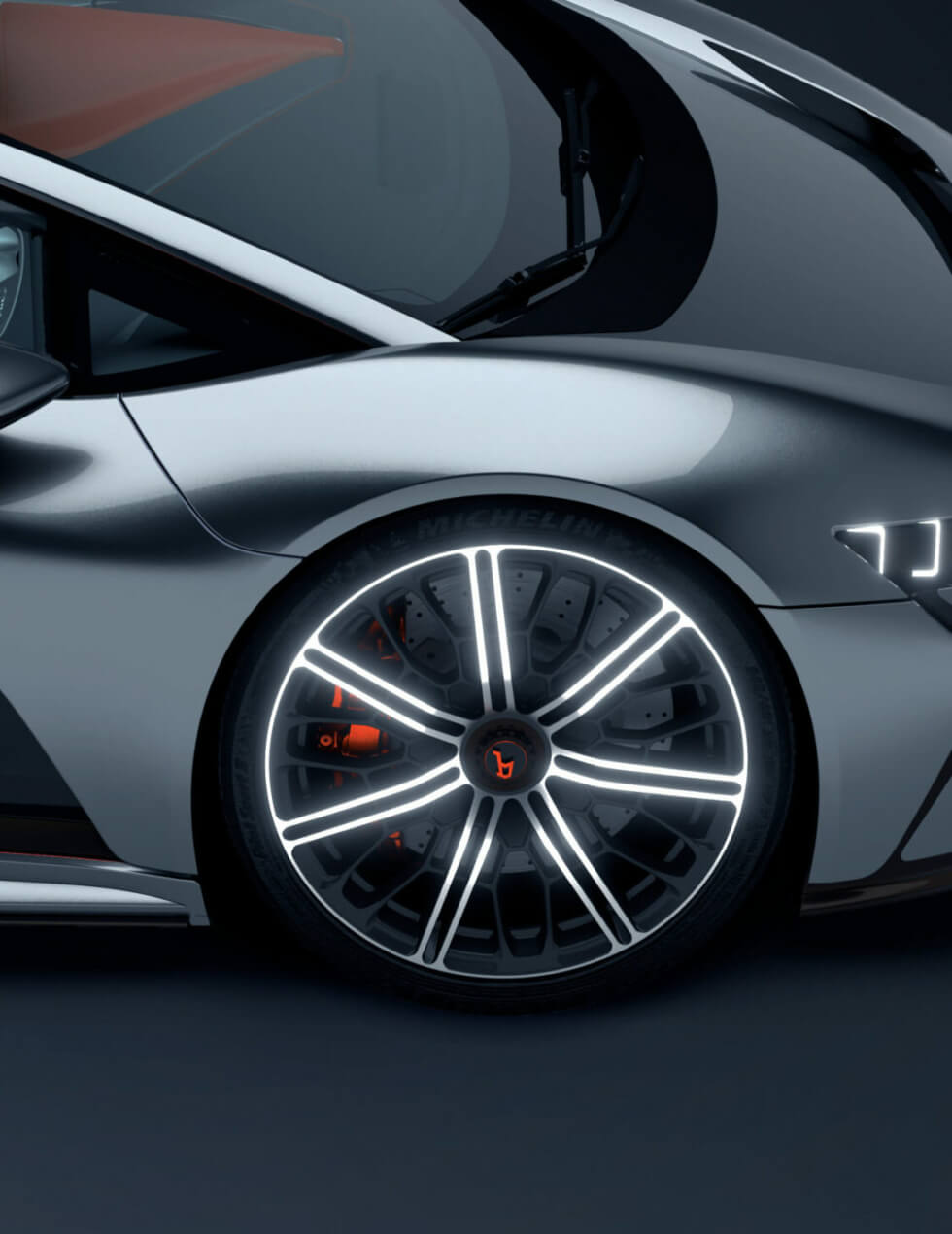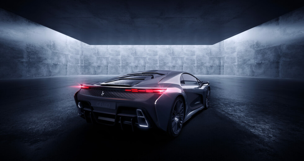 This limited-edition hypercar draws inspiration from Bertone’s classic portfolio of works from the 50s to the 70s. It’s clear that the aggressive aerodynamic silhouette of the GB110 conveys speed and agility on the street or tracks. Everything about this curvaceous coupe is optimized for weight savings to aid in driving dynamics.
