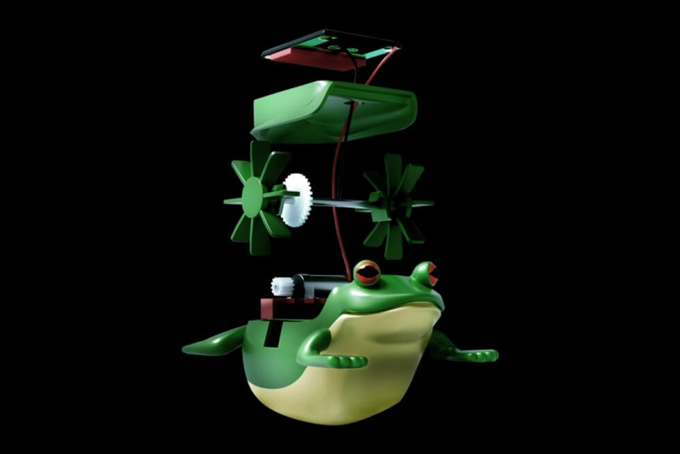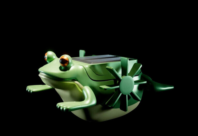 Instead of batteries, the team outfitted the housing with a photovoltaic cell to turn solar energy into mechanical energy. The Guardian Toad’s shell is engineered to be buoyant, while a small motor spins and turns the blades for propulsion.