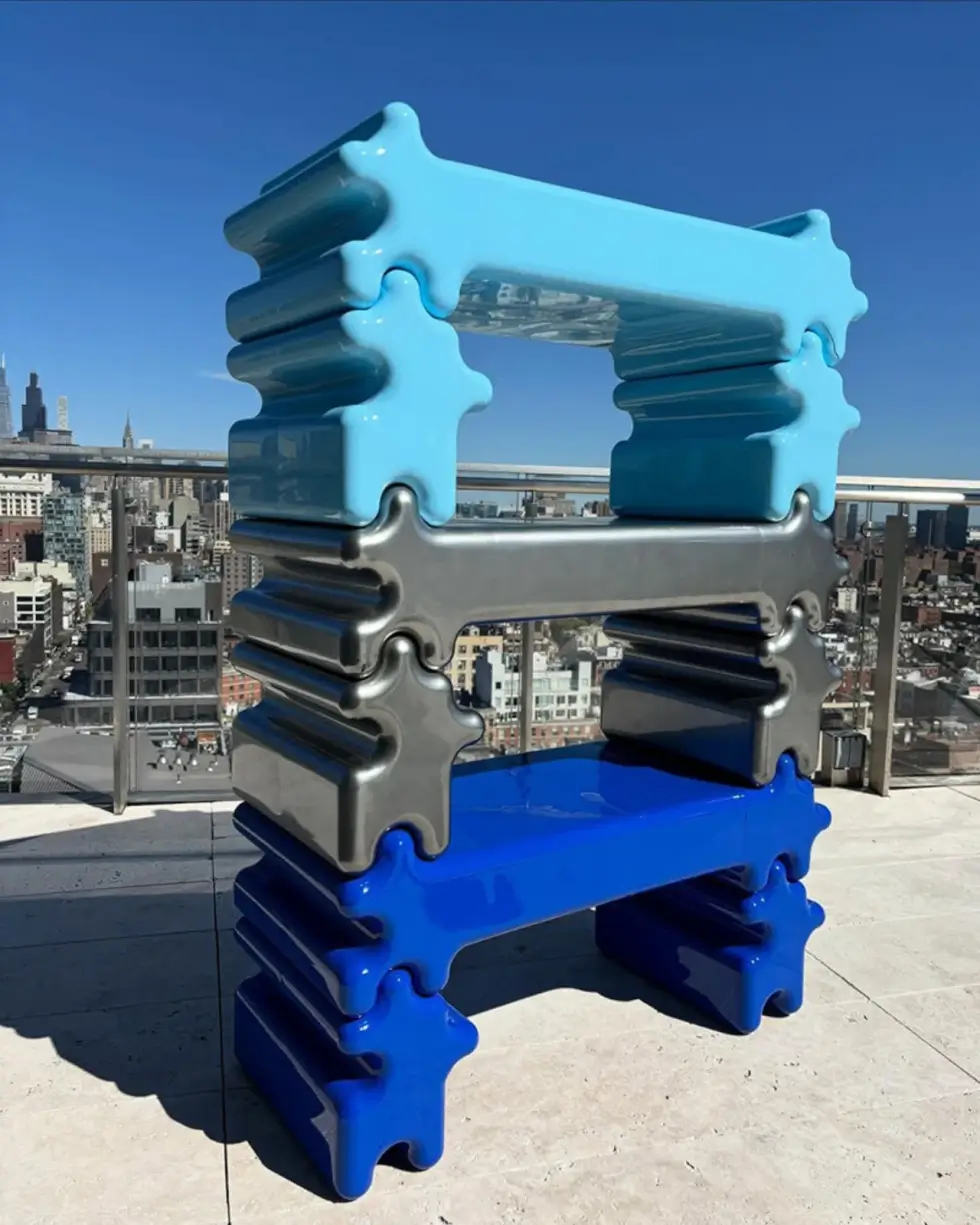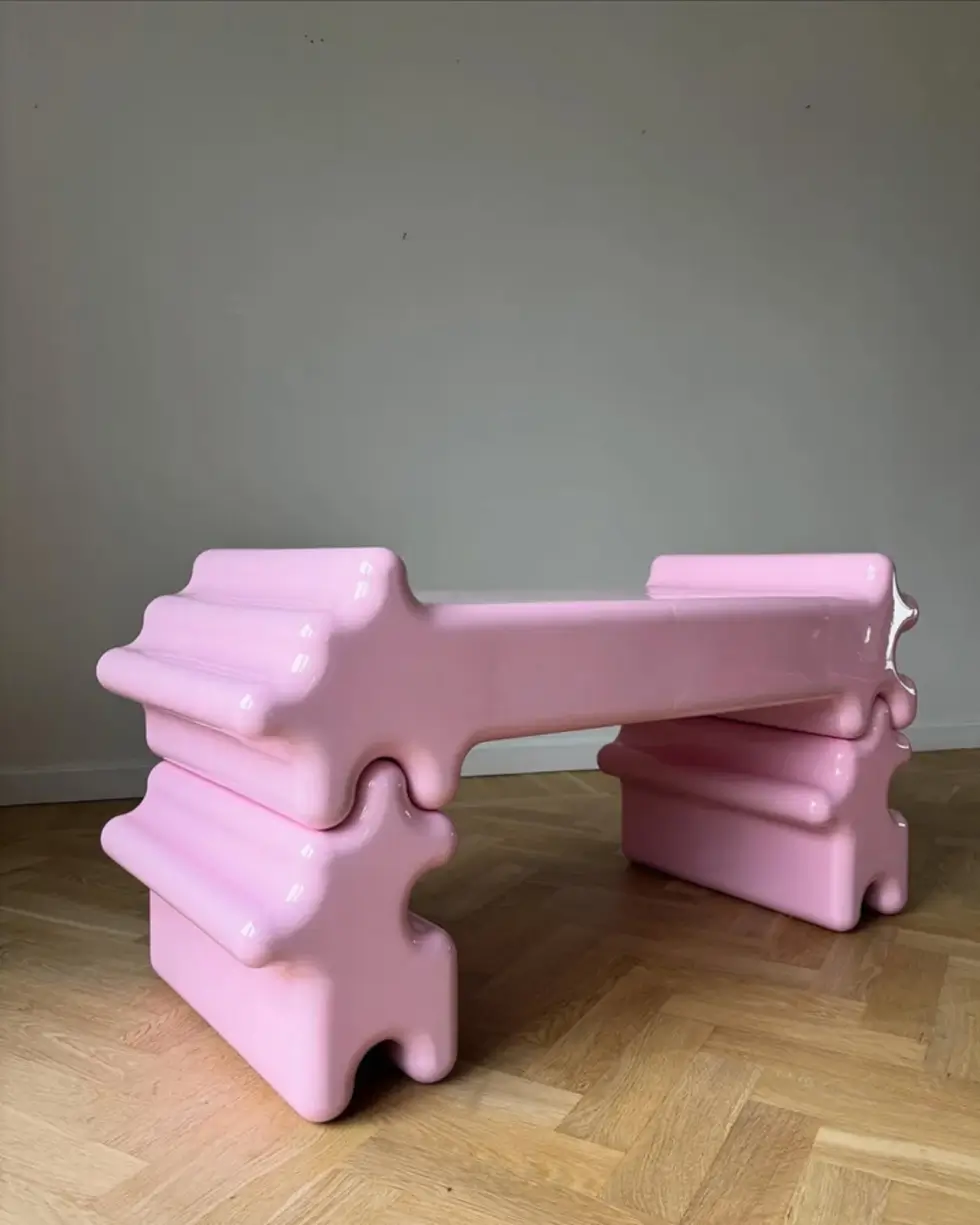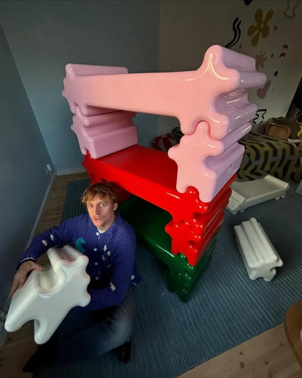 Swedish designer Gustaf Westman makes bold, fun, colorful, chunky, and quirky everyday pieces from tumblers, plates, planters, stools, and more. His creations stand out and make great conversation starters in any interior setup. His latest creation, the Puzzle Shelf, invites playful interaction and creates social connection.