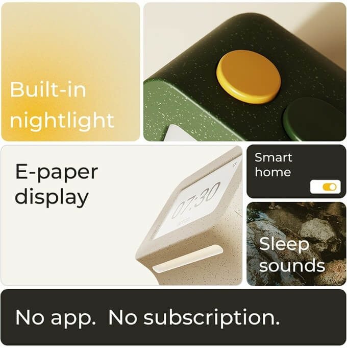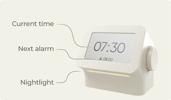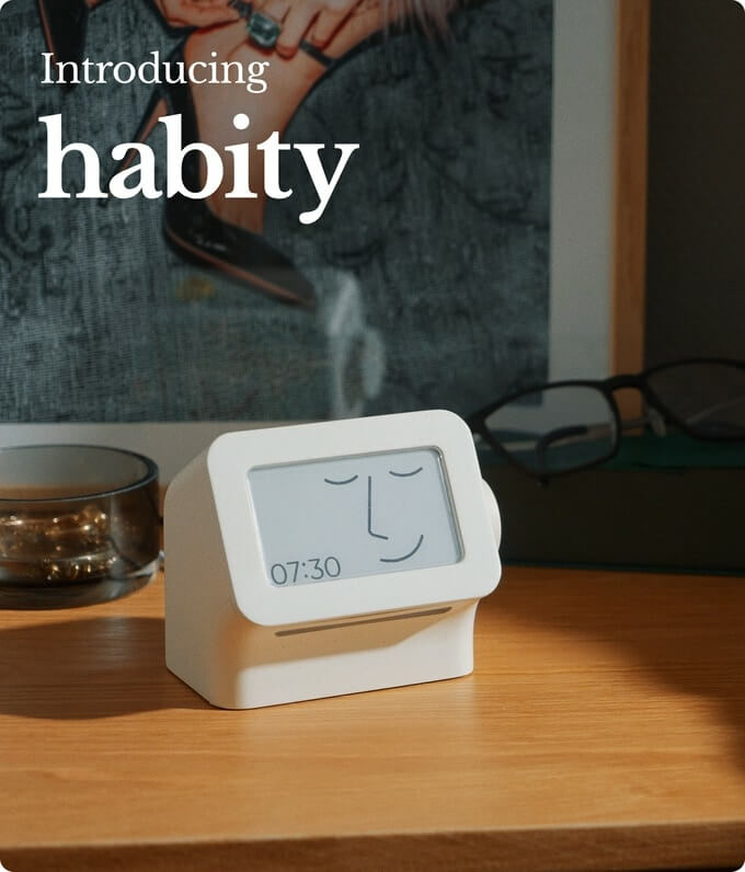 Habity is a bedside clock that aids with better sleep and gentle wake-ups with its health-centered design. It helps reduce screentime and blue light exposure and offers calming sounds that lull you to sleep.