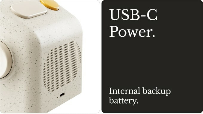 There are multiple watch face designs to choose for standby mode, it has 12 hour and 24 hour time display, and runs on a standard USB-C wall adapter. Habity has added internal backup battery that lasts between 48-24 hours.