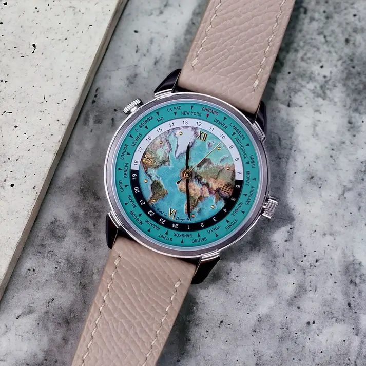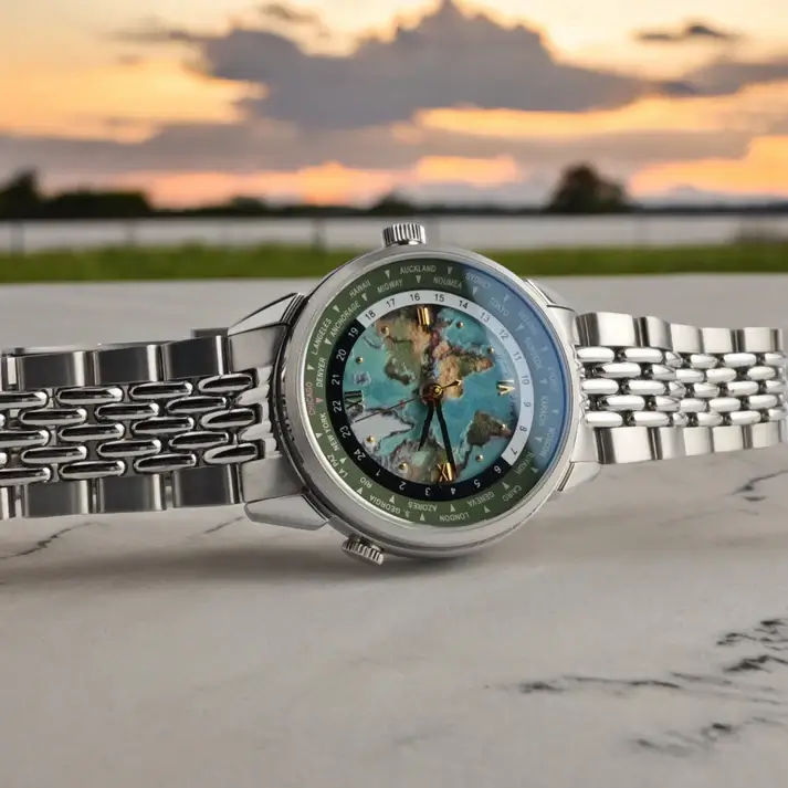 The name may not ring a bell to most watch enthusiasts, but the Chicago-based outfit boasts a modest catalog with plenty of options to suit every buyer’s need. For the constant traveler who prefers analog over digital, we have this dapper world timer. Available in three variants, we can choose between the Air, Land, and Water.