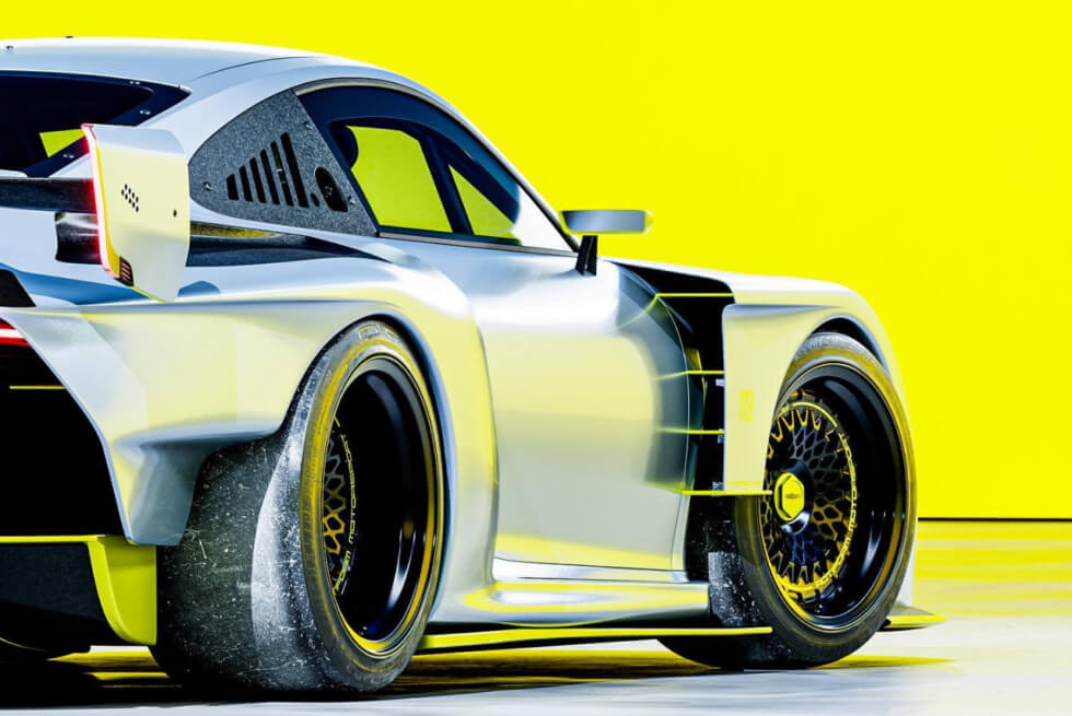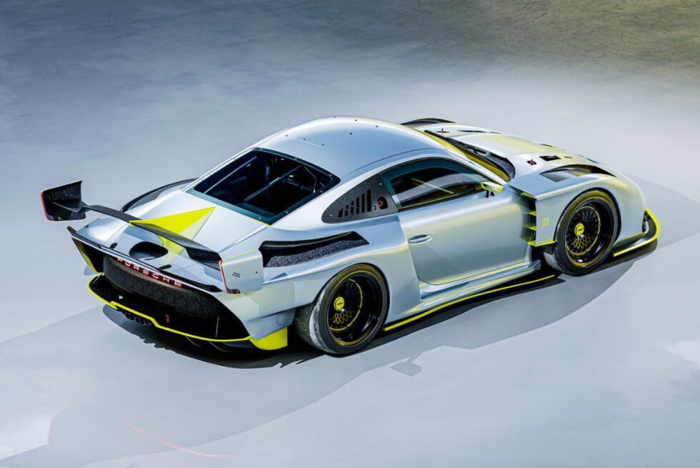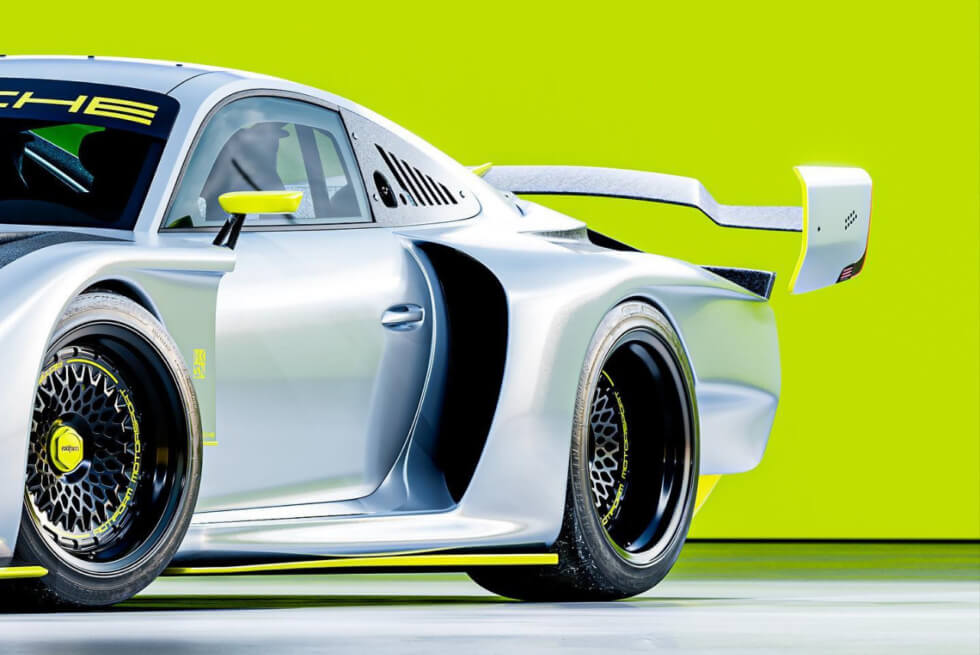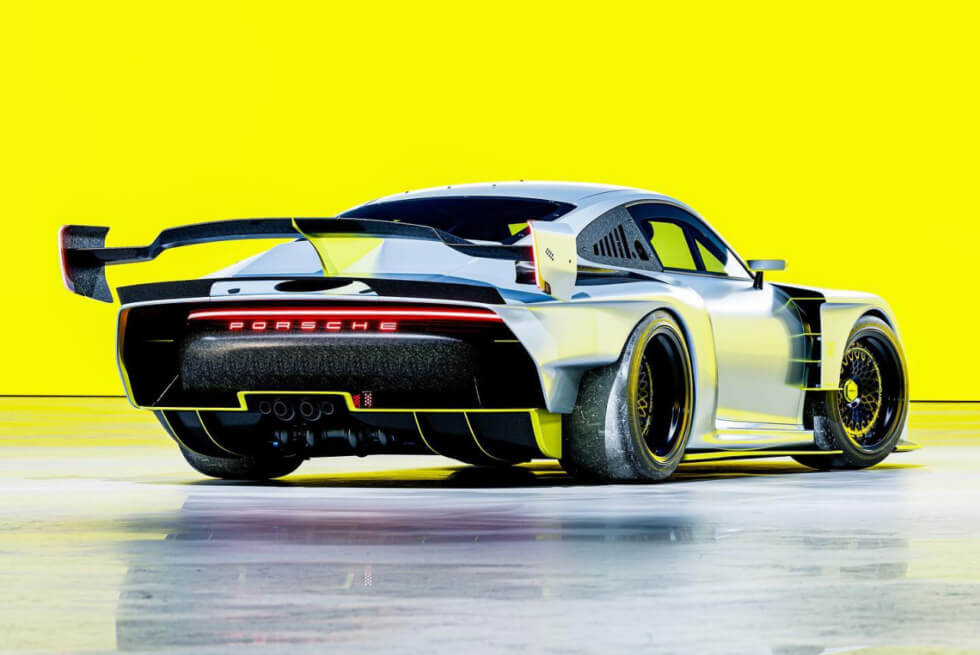 The first thing you’ll notice is the absence of graphics, save for the Porsche branding on the windshield just below the roofline. The light metallic gray paint features neon yellow trims on various parts of the 935. We also notice that it rides on a set of black Rotiform rims wrapped in Michelin Pilot Sport 4 S tires.