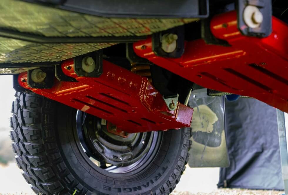 Everything rides on robust independent suspension units and big bore gas shocks. Next are the 16″ alloy wheels shod in M/T tires and mounted on heavy-duty PCD 6×139.7 hub bearings. For an extra seamless setup, an onboard air compressor and motorized system quickly deploy the HARDKORR Family rooftop tent.