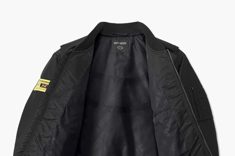 Harley-Davidon’s “At The Crank Bomber Jacket” also offer welt hand-warmer pockets with hidden snap closures and has a rib-knit collar, cuffs, and hem for additional warmth. Go out and make a statement with its stylish silhouette adorned with a unique allover printed lining. It comes in Black and Lapis Blue colorways.