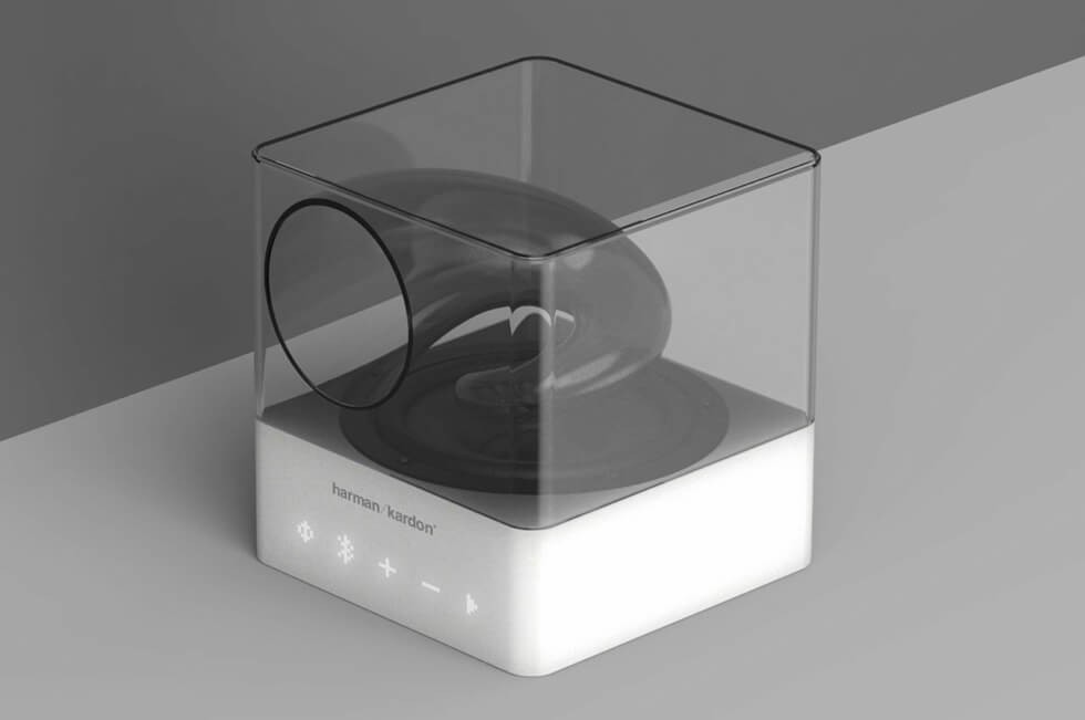 Back when what mattered to discerning audiophiles was purely the quality of sound, Harman Kardon blew everyone away with the first-generation SoundSticks. The original release was just the subwoofer component co-developed with Apple called the iSub. To this day, the use of transparent elements is often associated with the brand. Thus, it becomes a defining feature of this Gramophone mini speaker concept.