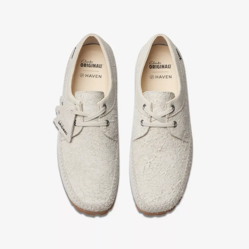 HAVEN’s latest collaboration with Clarks Originals brings a GORE-TEX upgrade to the iconic Weaver silhouette to make it ready for the great outdoors. The Weaver GTX comes in premium white hair “Mohawk” suede uppers sourced from CF Steads with a waterproof and breathable GORE-TEX lining so it can survive dips in puddles and rain showers.