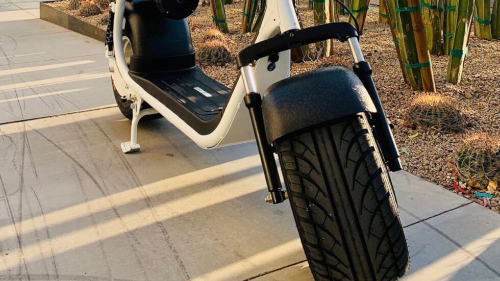 Moreover, the HD Phat Electric Scooter comes with ultra-bright LED headlight, a powerful 2000W electric motor safely tucked inside the wheel hub, and electronic-ABS hydraulic disc brakes. This trendy and sporty-looking ride can support a maximum weight of 440 pounds and comes with other essentials. These include a phone and beverage holder, wheel lock, rear-view mirrors, and TireJect’s run-flat tire sealant.