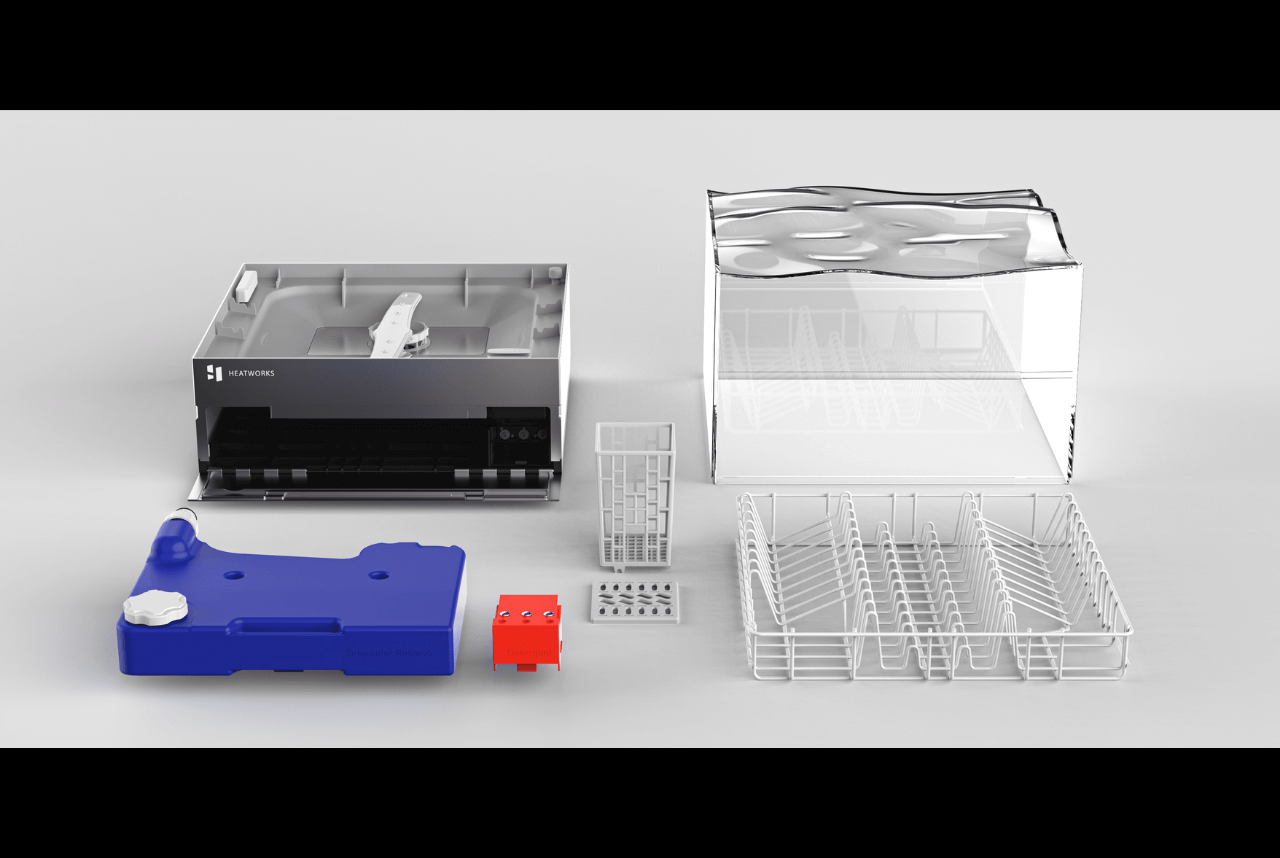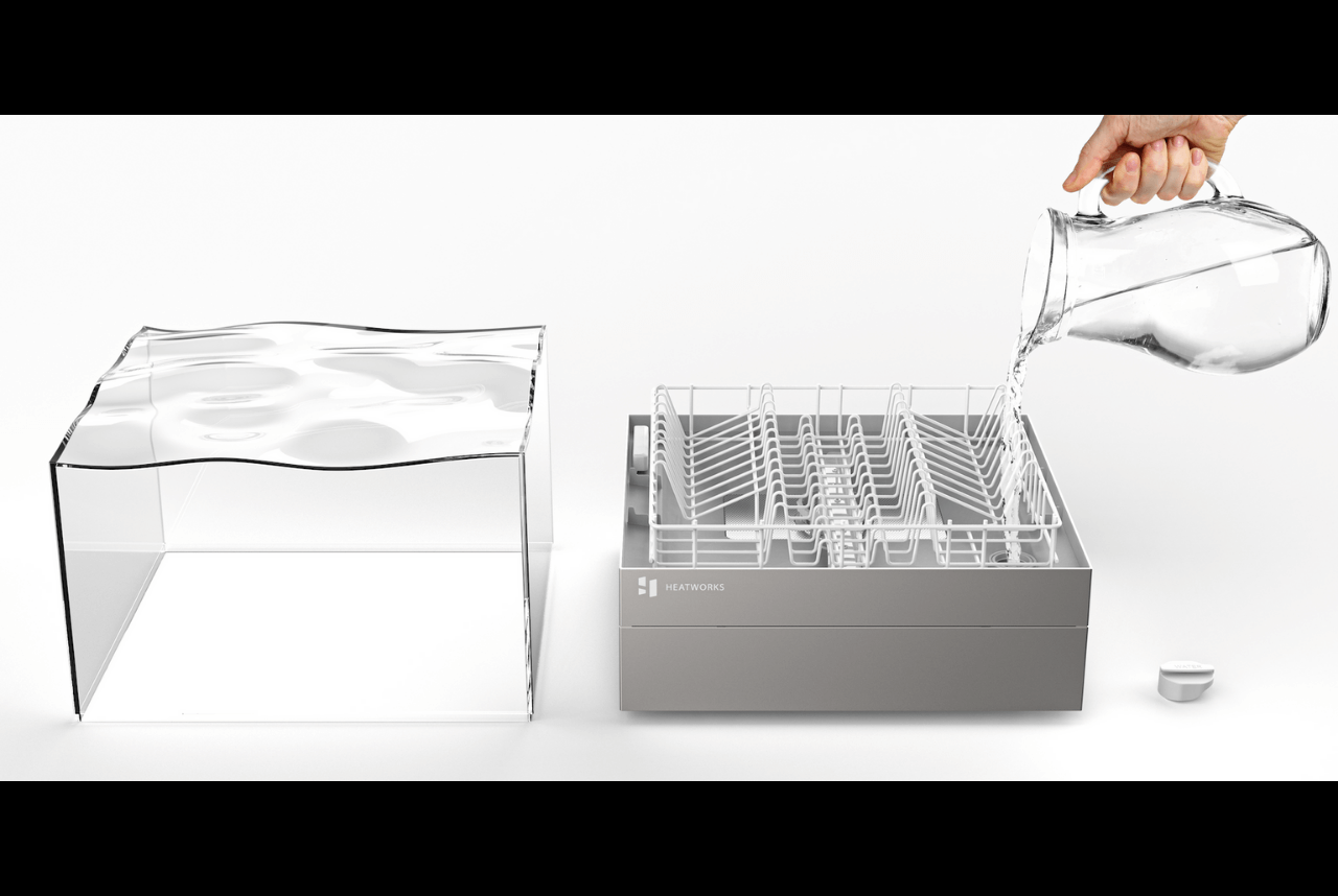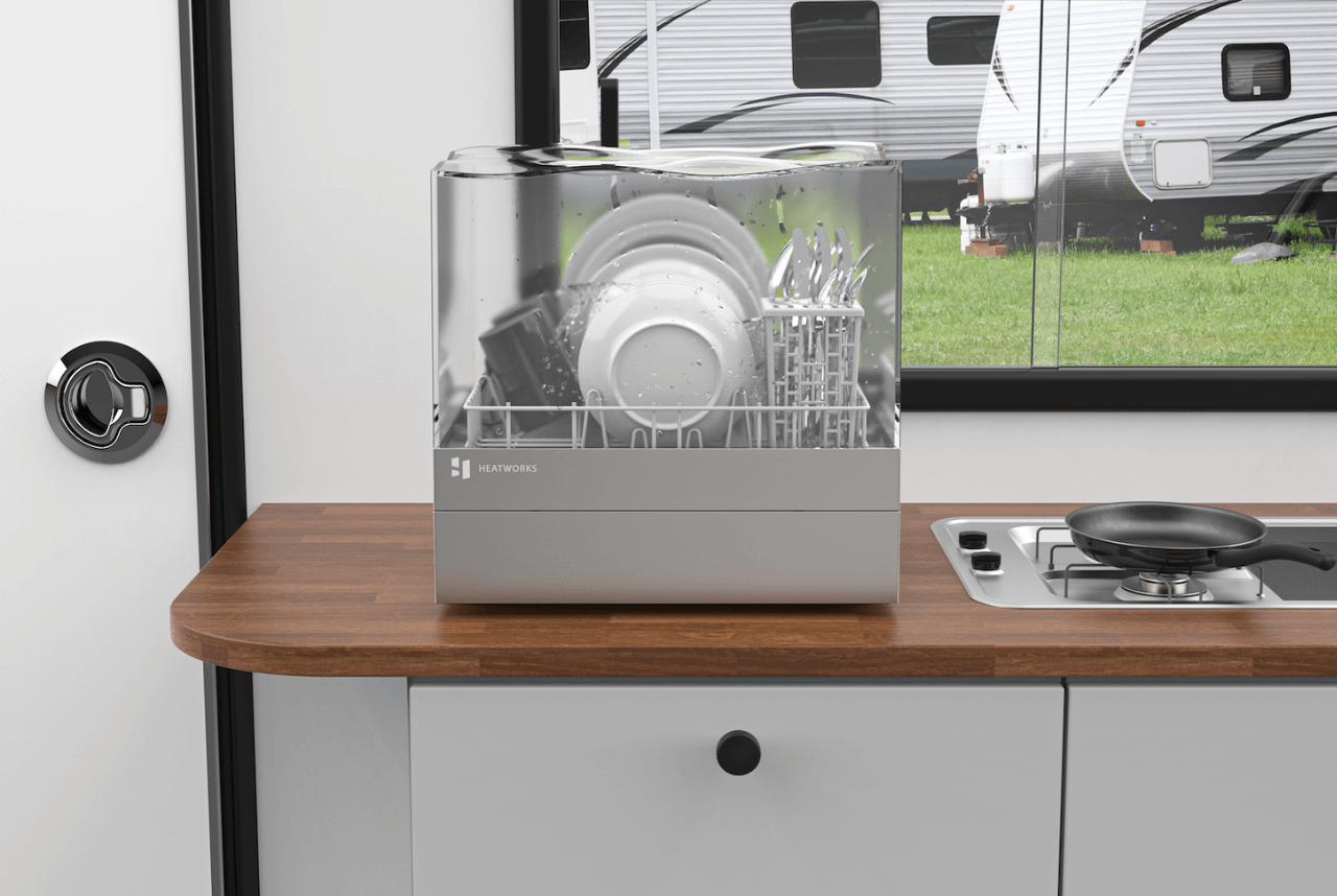 Heatworks ships it with a standard dish rack, a silverware basket, a spatula to help remove food, and a detergent cartridge. To use, just lift the lid, pour three liters of water, load it, and choose a cleaning cycle. Once complete, all that’s left to do is empty the graywater tank and that’s it.