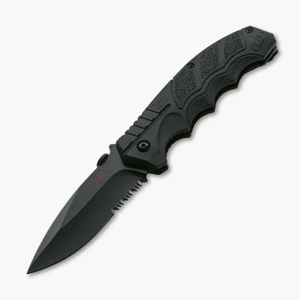Moreover, Heckler & Koch’s SFP Tactical Folder is portable and compact enough for everyday carry at 8.58″ long and 4.50 oz. It comes with a high-quality nylon case for safekeeping. Branding on this folder is subtle and found on the handle scales and the deep carry tip-up pocket clip.