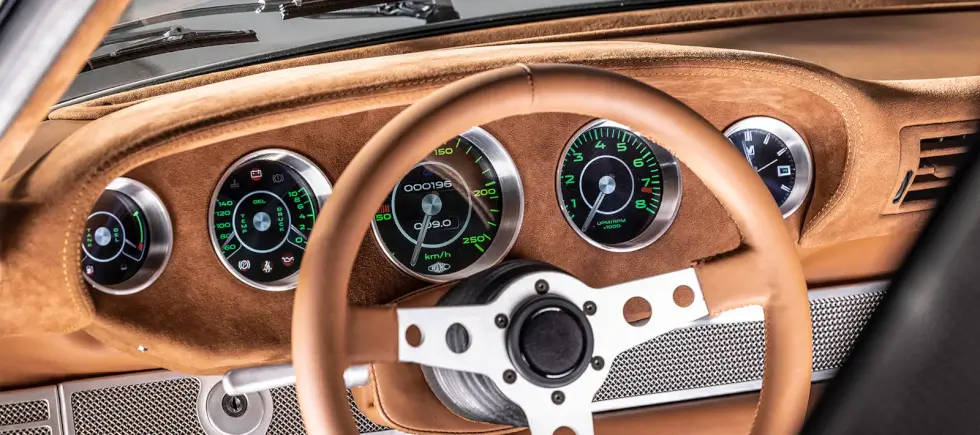 Hedonic Machines give due credit to one of its partners for manufacturing the replacement cover. Next, the 911 Targa welcomes some high-tech upgrades. The analog instruments are out as digital screens take over the driver-side dashboard.