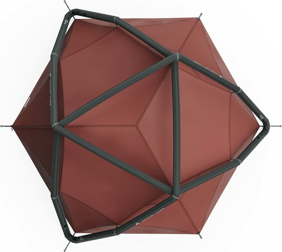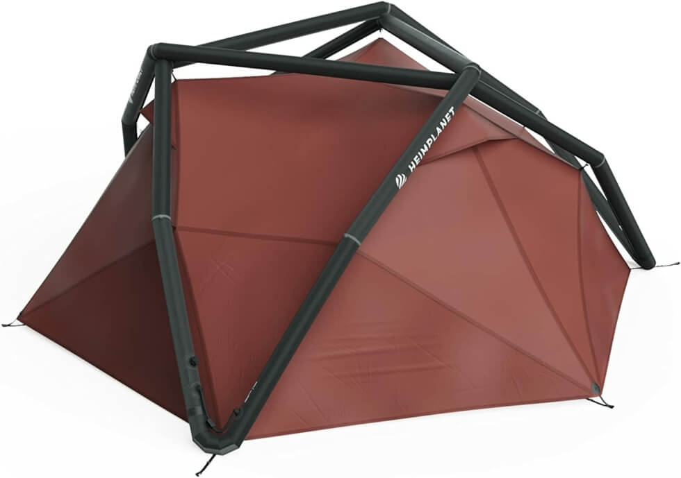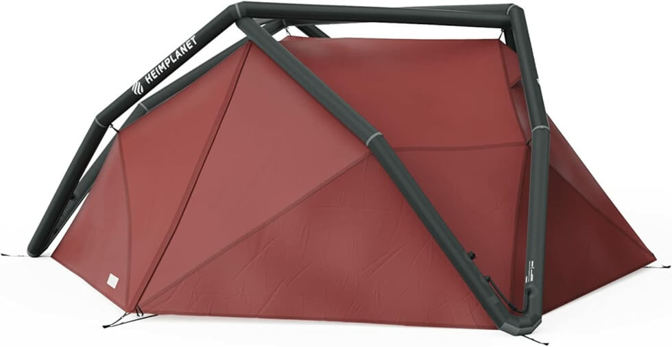Thanks to Heimplanet’s new variant of their Inflatable Diamond Grid (IDG), they were able to handle the struts of the airframe more efficiently. The product is a stable tent with a footprint of 5.2 m² (inner tent 4.2 m²). It not only has a roomy interior but also plenty of space to store equipment. The awning offers plenty of room along with the interior sewn-in pockets and the removable compartment under the roof.