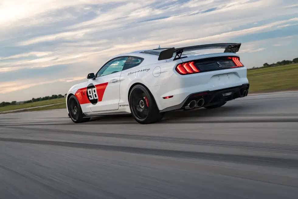 Overall, this selection of tweaks allows the Ford Mustang GT500 to produce 1,204 horsepower at 7,600 rpm and 902 lb-ft of torque at 5,200 rpm. Apart from the jaw-dropping performance, Hennessy Performance exterior badging, Venom 1200 badging, an exclusive serial number plague, and an optional 1966 24 Hours of Daytona livery adorn the vehicle.