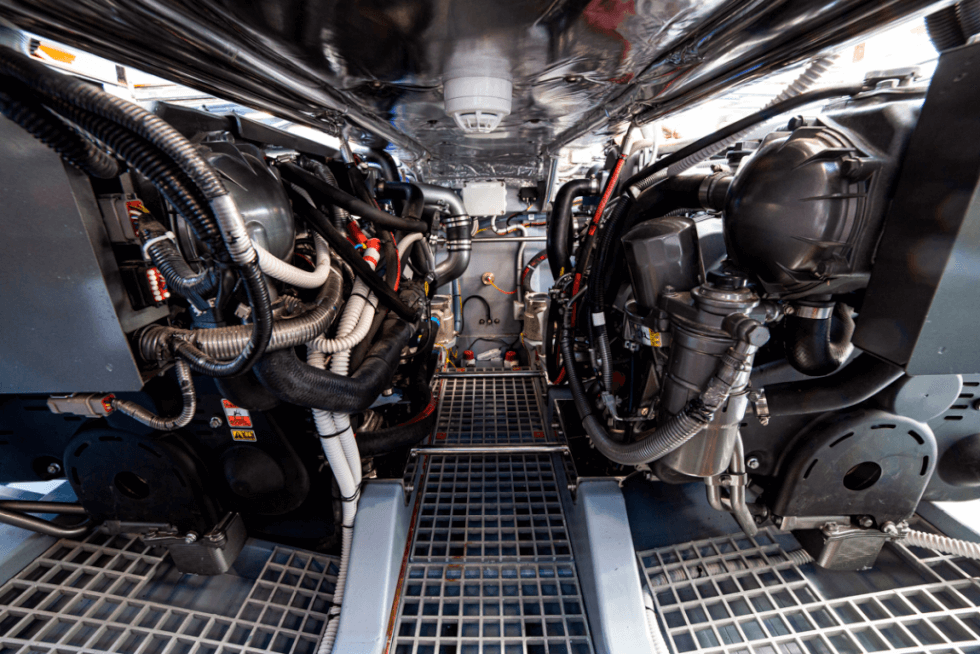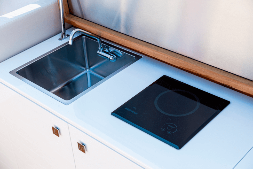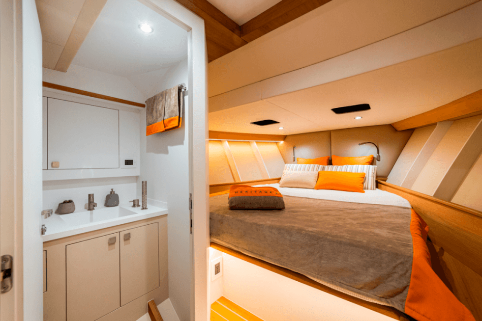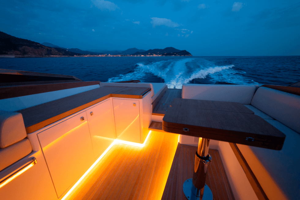 The ship measures 10.91 meters in overall length, 3.54 meters for the beam, and a draft of 0.54 meters. Its twin 320-horsepower Yanmar engines allow it to reach speeds of up to 39 knots as well as a range of 160 nautical miles. Just sit back and relax as you lounge around the spacious deck of the Heritage 9.9. Fancy a swim? The swimming platform is just within reach. When it’s time to retire, head down to find a single cabin, bathroom, and a galley kitchen.