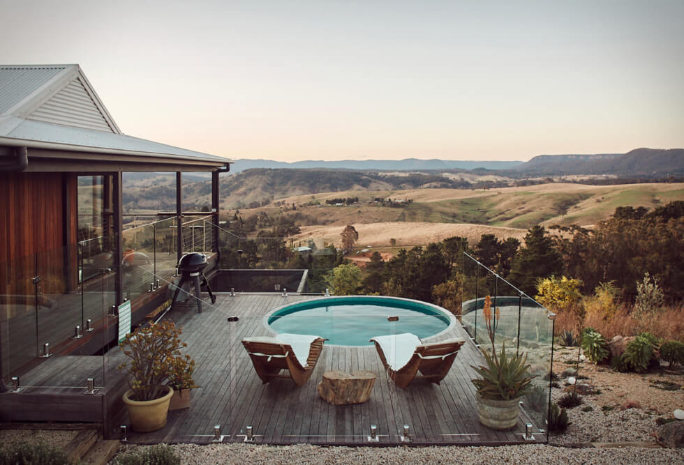This retreat home at Logan Brae Retreats is perfect for those looking to escape the hustle and bustle of urban living. It offers uninterrupted panoramic views across to the Blue Mountains escarpment and the occasional visits by spot eagles during the warmer months.