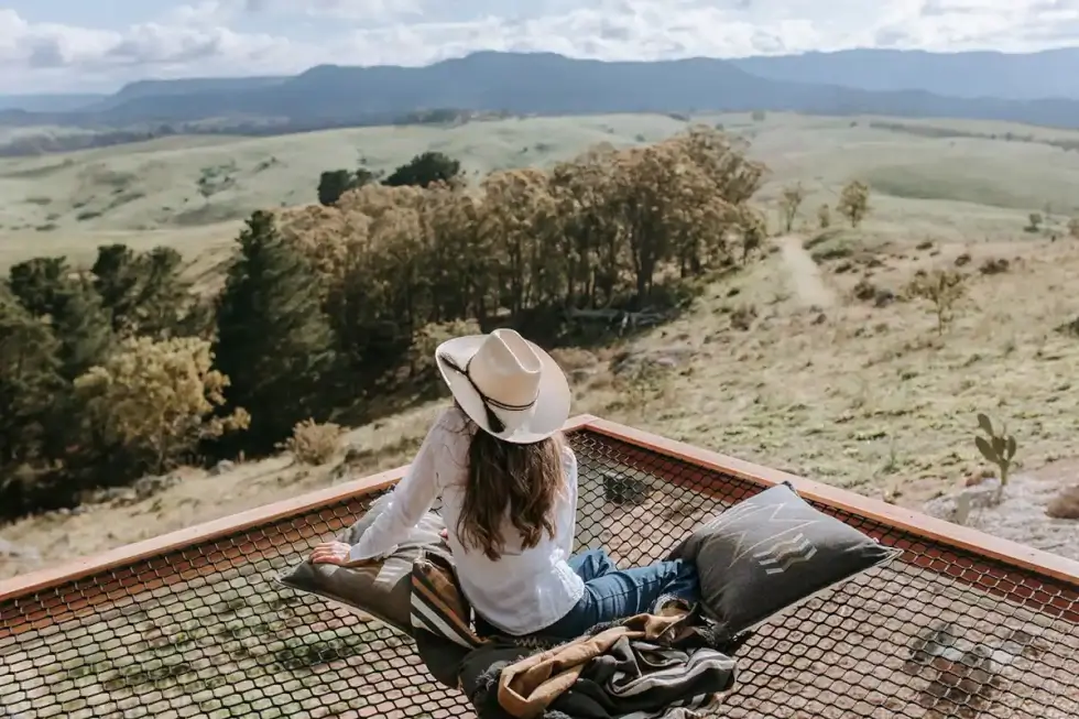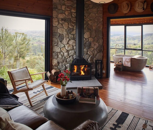 The Hilltop Cabin offers luxurious living while surrounded by wild countryside. The cabin is set atop a serene hill at the highest point of Australia’s Kanimbla Valley, making you feel like you’re on top of the world.