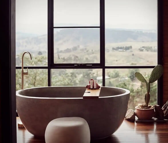 You can soak in the freestanding bathtub or snuggle up by the open fire. One if its standout features is the solar-heated mineral plunge pool. The pool is ideal for use during sunny days or warm weather as the solar heating elevates the water temperature to 3-4 degrees above the daily average. This way, ensuring that you have a relaxing soak as you immerse in the surrounding vista.