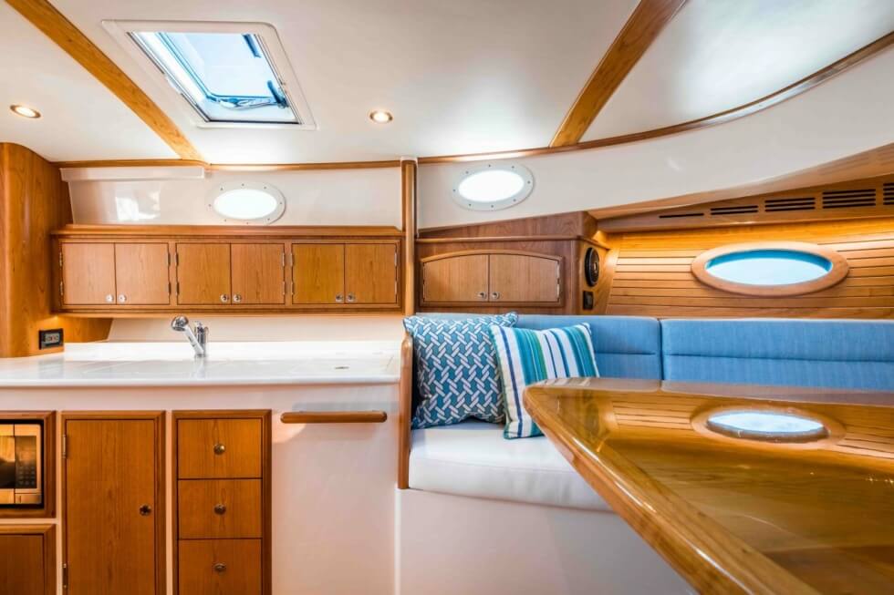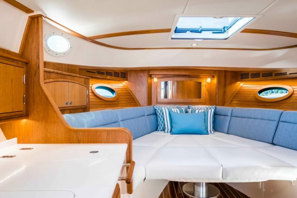 This 40-footer basically reuses the blueprint of the beloved Picnic Boat 40 S. Thus, the elegant aesthetics and familiar deck layout are intact. Meanwhile, the hybrid system the 40 S SilentJet uses is a joint project between Hinckley Yachts and Twin Disc.