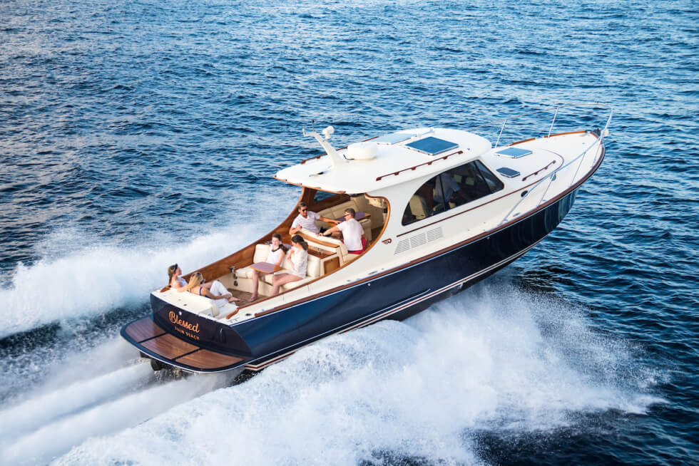 Even as battery technology improves, it appears that we are still far from fully electric propulsion systems. Although it’s not a totally green approach, most shipbuilders are opting for hybrid platforms instead. Any effort to reduce emissions is always welcome which is why Hinckley Yachts gives us the Picnic Boat 40 S SilentJet.