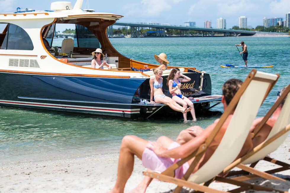 Engage the throttle and the engines roar to life and zip you up to 40 mph. Via an advanced automatic switching technology, the electric motors then turn into generators that recharge the battery. The Picnic Boat 40 S SilentJet’s sleek looks and hybrid capabilities are selling points you may want to consider.