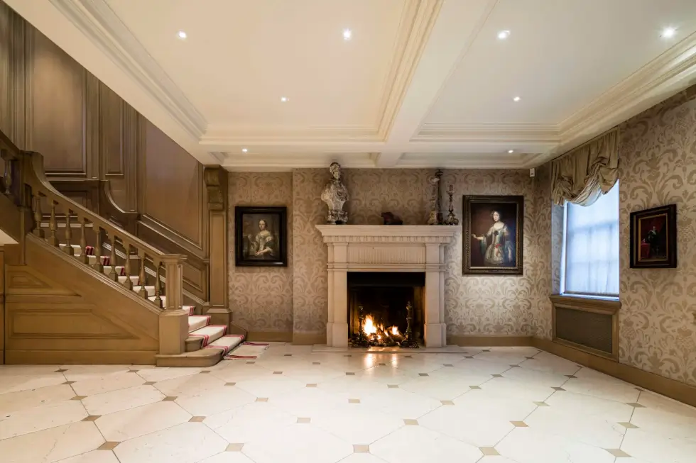 Cartland’s former Mayfair home has undergone modern upgrades. But it maintained some of the original period features including soaring and embellished ceilings, a sweeping L-shaped wooden staircase that gracefully zig-zags to the first floor, and stone fireplaces in the interior. There are also the two large chimneys that have become symbols of prestige and wealth for centuries.