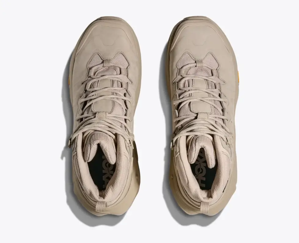 Furthermore, there is the dual-density midsole, which is 30% sugarcane EVA foam, and a PU sockliner with 50% Susterra. Meanwhile, HOKA sources gold-rated waterproof nubuck leather from the Leather Working Group. To lock you in, the shoelaces thread through textile loops, eyelets, and metal top hooks.