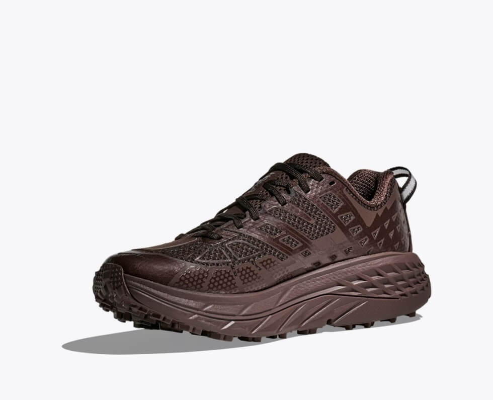 We wish you the best of luck as the duo of trail-running silhouettes appears to be quite stylish. The STEALTH/TECH Mafate 2 and STEALTH/TECHv Speedgoat 2 sport a “Walnut/Cast Iron” colorway. Earthy shades on rugged shoes are usually a hit among outdoor enthusiasts, hence expect the sneakers to quickly sell out.
