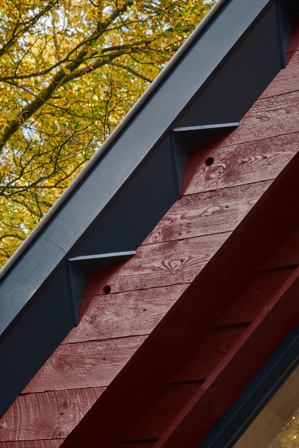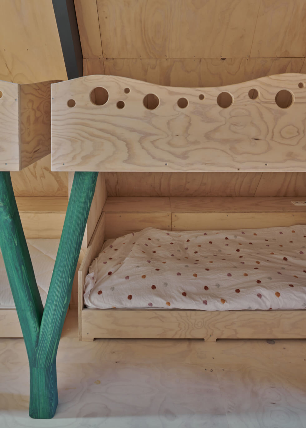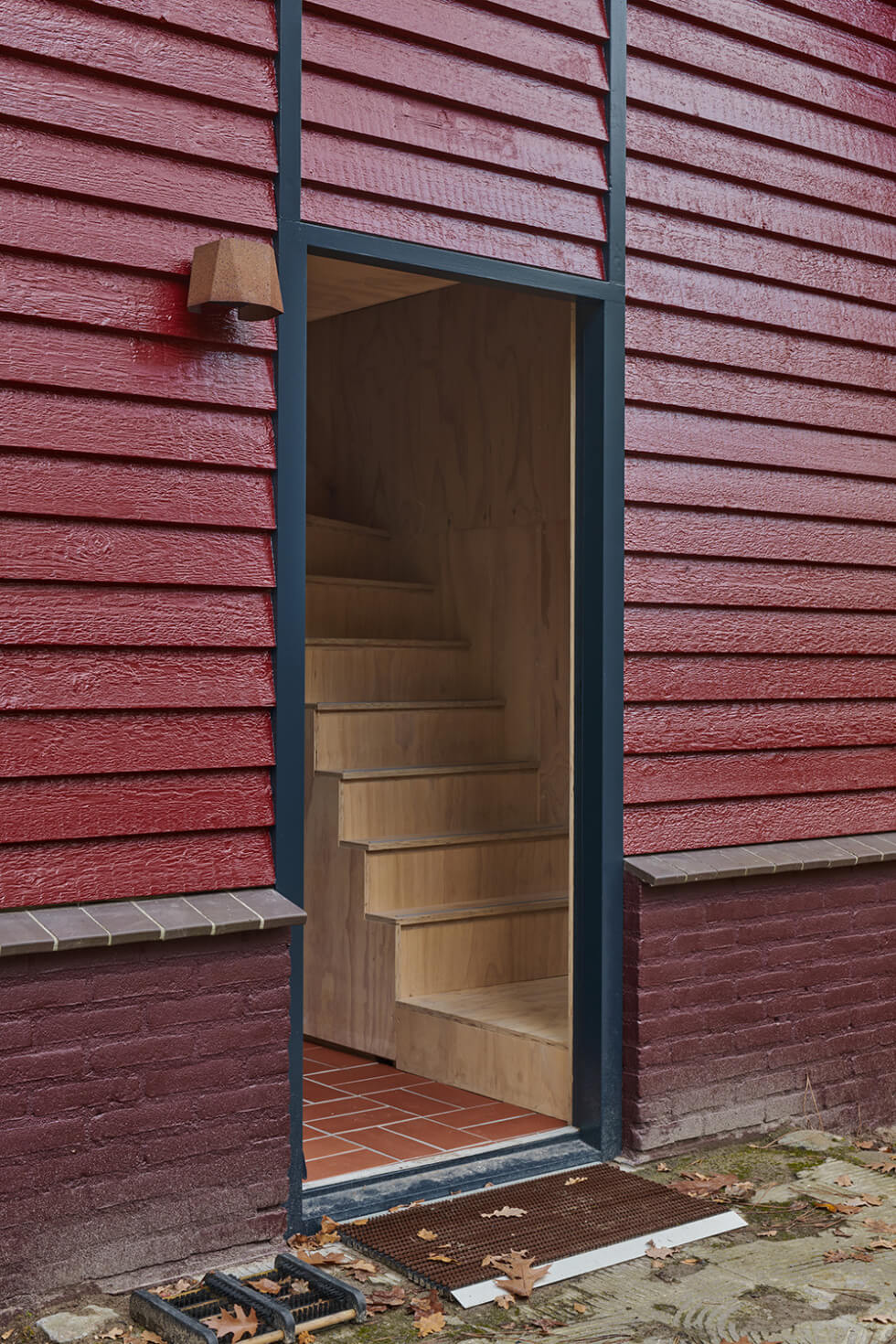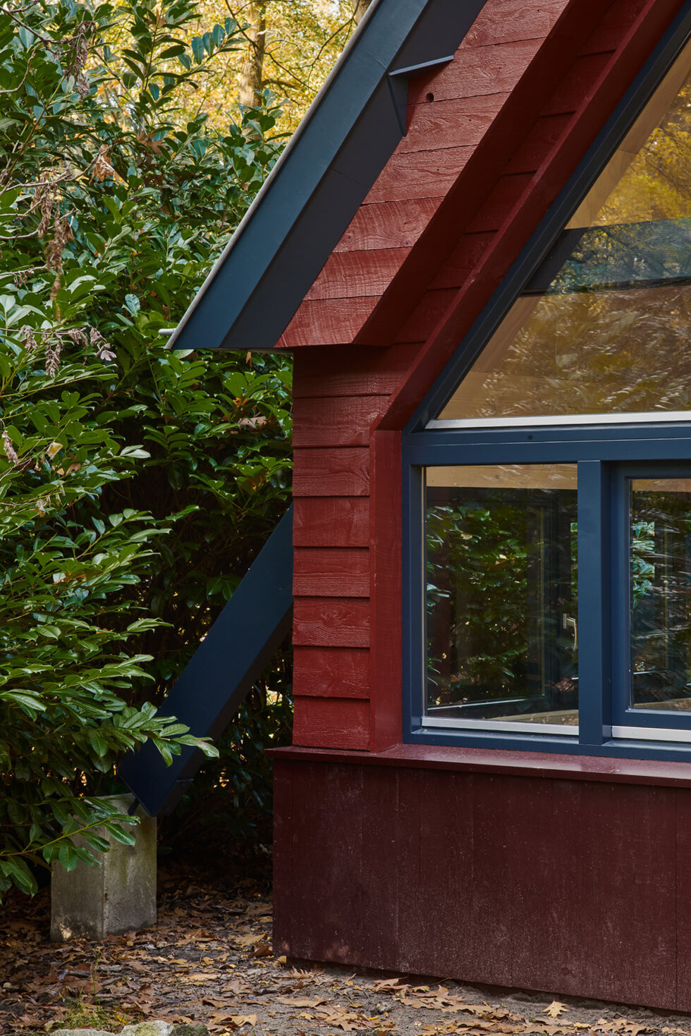 Recently completed just this year, the Holiday House Herperduin is in Herpen, Netherlands. The property spans roughly 915 square feet and stands on a small clearing. The location is a “forest park near the Herperduin nature reserve, surrounded by heathlands, ponds, and sand drifts,” writes the studio.