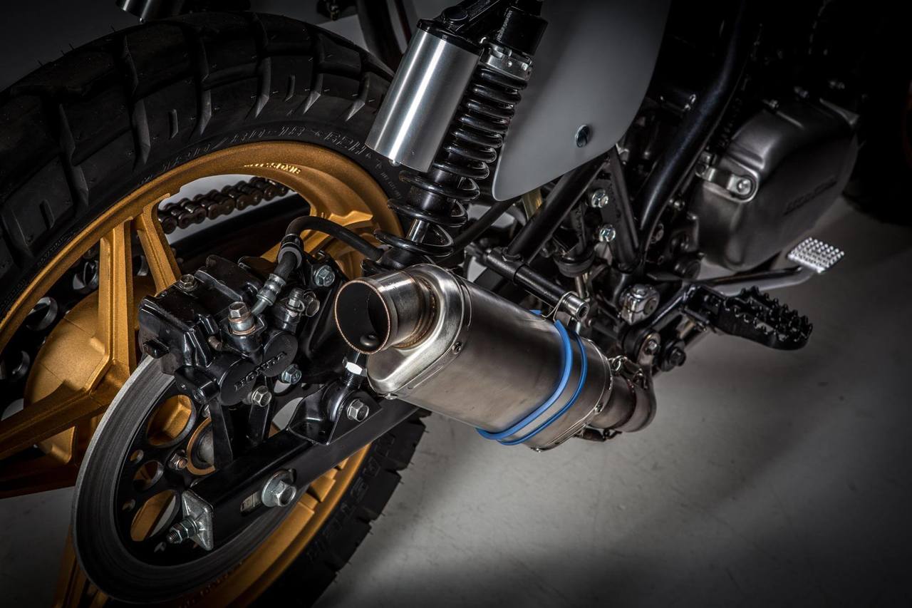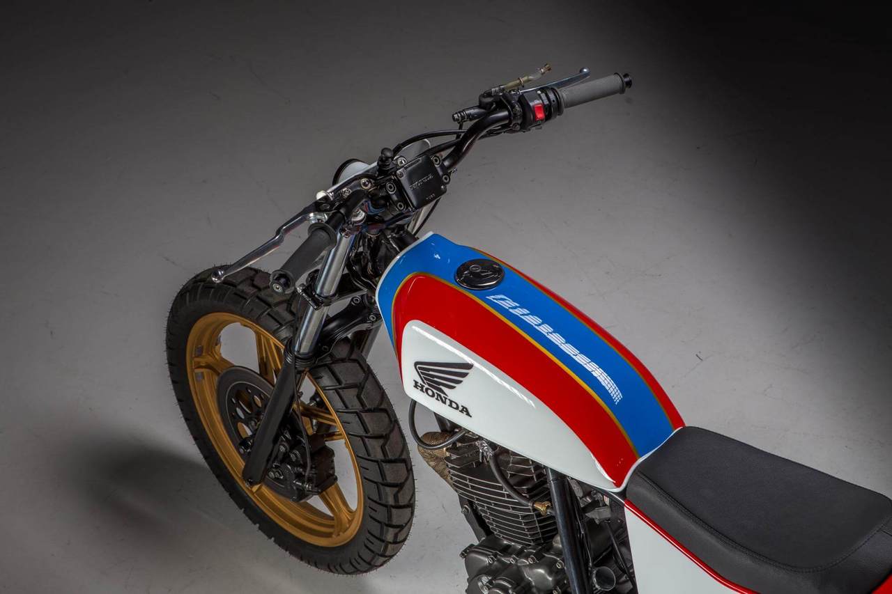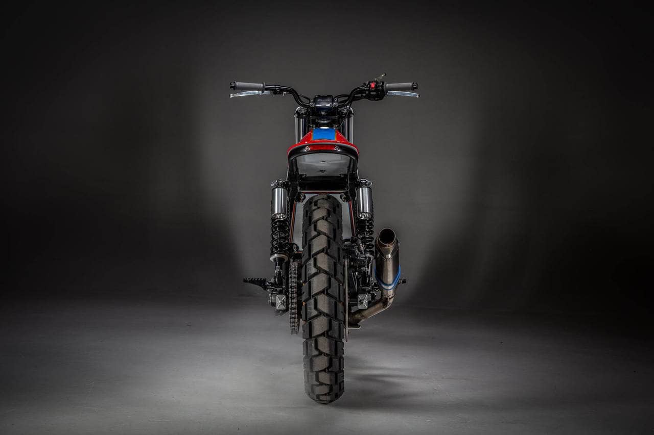 Removing was their first order of business. The shop took out the bike’s distinctive battery mount, bulky rear frame adornments, and the electrical components. In replacement, MotoRelic chucked in its custom TS250 tank and plastered minimalist aluminum body panels all over the thing. They chose Shinko tires to round out the entire look, which come mounted on the bike’s stock wheels. There’s also a Shorai battery, to boot. Presented in a delicate pearl, red, yellow, and blue paint, the build combines flair and utility flawlessly. Maybe favoring flair a bit, though, although a little lean-in to style isn’t so bad, right?
