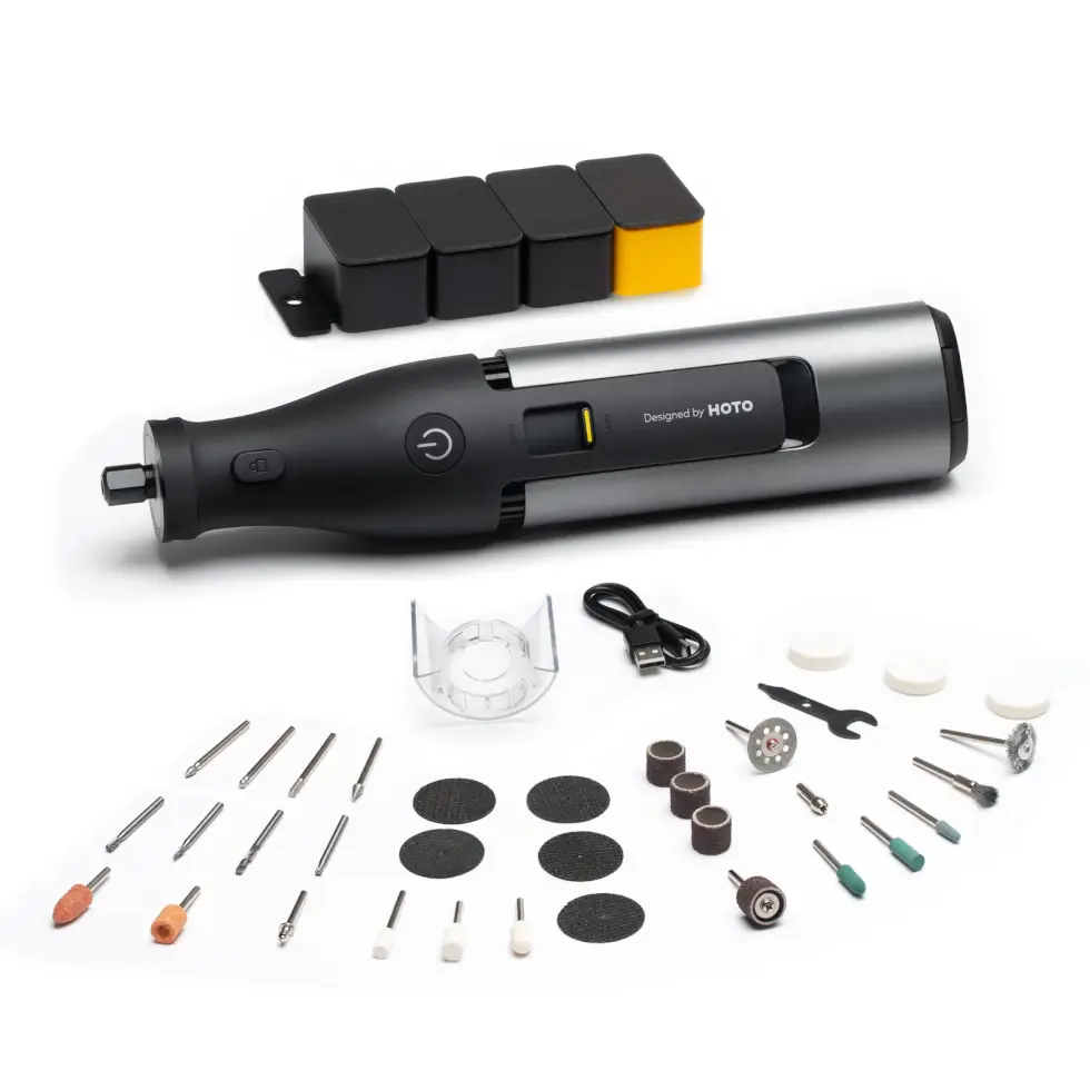 The Hoto Cordless Rotary Tool Kit is for both beginners and pros. It offers power, precision, and convenience in a compact and portable design, making it the ideal companion for DIYers or for the jack-of-all-trades.