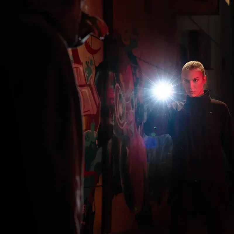Then working alongside its 0.2-second response time is the dual-function button for lightning-quick illumination. It springs into action when needed and blasts out a powerful 2300 lumens that can reach a throw distance of up to 300 meters. The Hoto Flashlight Tactics 2300 also offers three brightness levels in a steady beam mode that can peak at a dazzling 1500 lumens, as well as a 6500k clear light source for practical use.