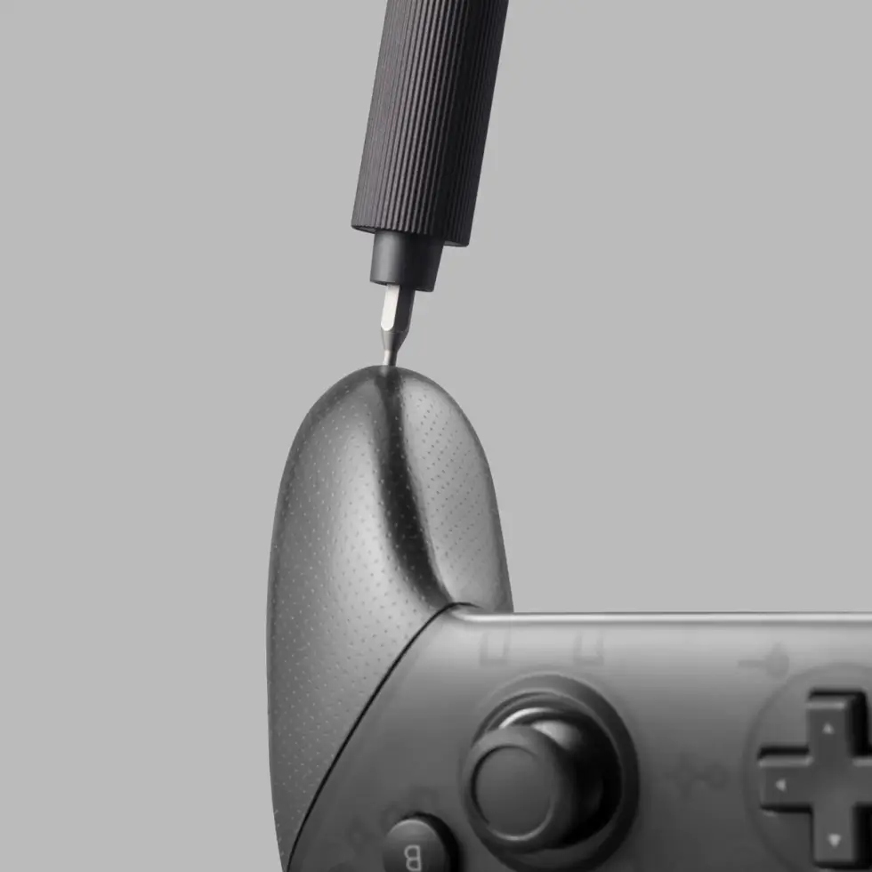 Nestled snugly to the left of the bits is the electric screwdriver. Its textured aluminum body provides excellent grip. The top features a USB-C charging port with an LED status light. Meanwhile, in the upper right corner of the Precision Screwdriver Kit case, is a magnetizer. This keeps the bits’ magnetic properties in optimal strength. Finally, the two buttons activate the forward and reverse action of the electric screwdriver.