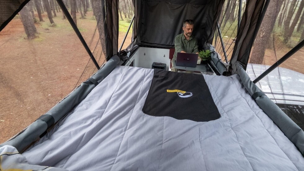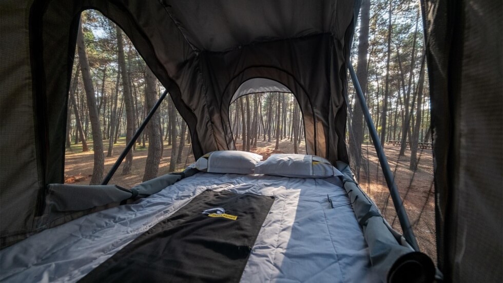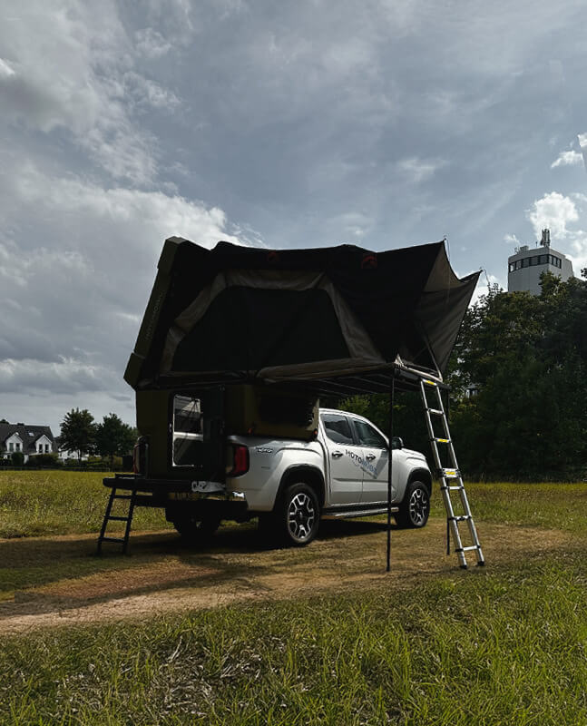 The Turkish manufacturer offers the Atlas Cabin Box Urban Edition in four colors: Black, Desert, Gray, and Khaki. Its shell touts a monoblock construction for superior durability and protection from the elements.  A telescoping ladder provides access to your accommodations directly from the ground.